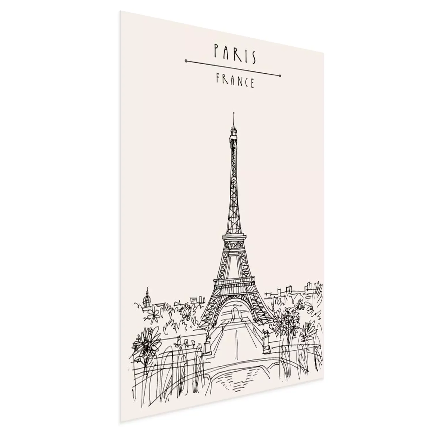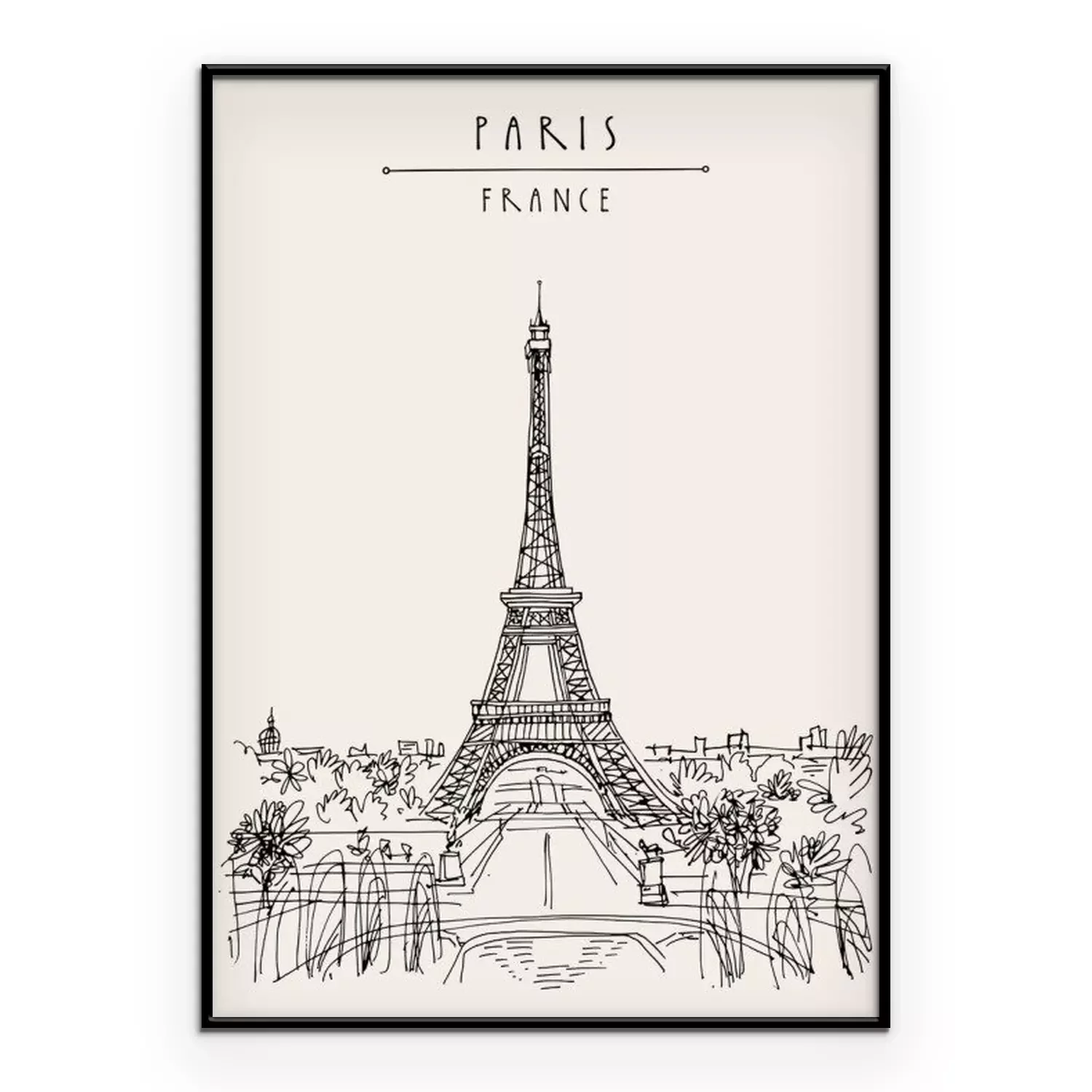 Eiffel Tower in Paris, France. Vintage hand drawn touristic postcard