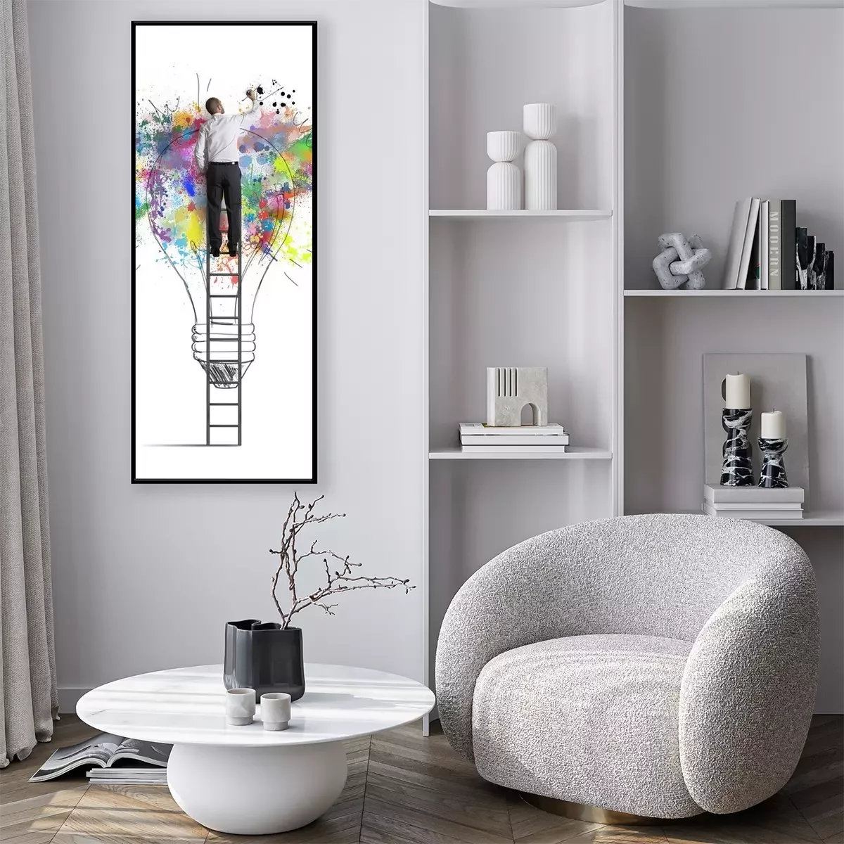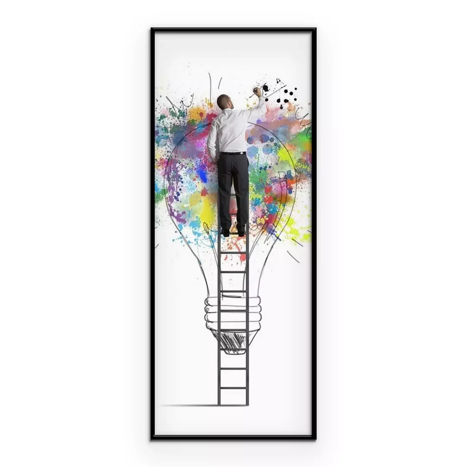 Poster: Skizze einer Glühbirne gefüllt mit farbigen Farbklecksen