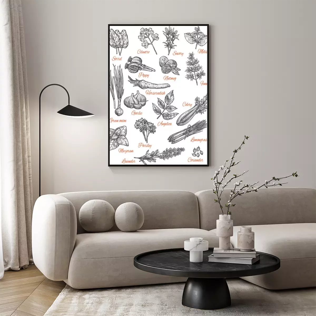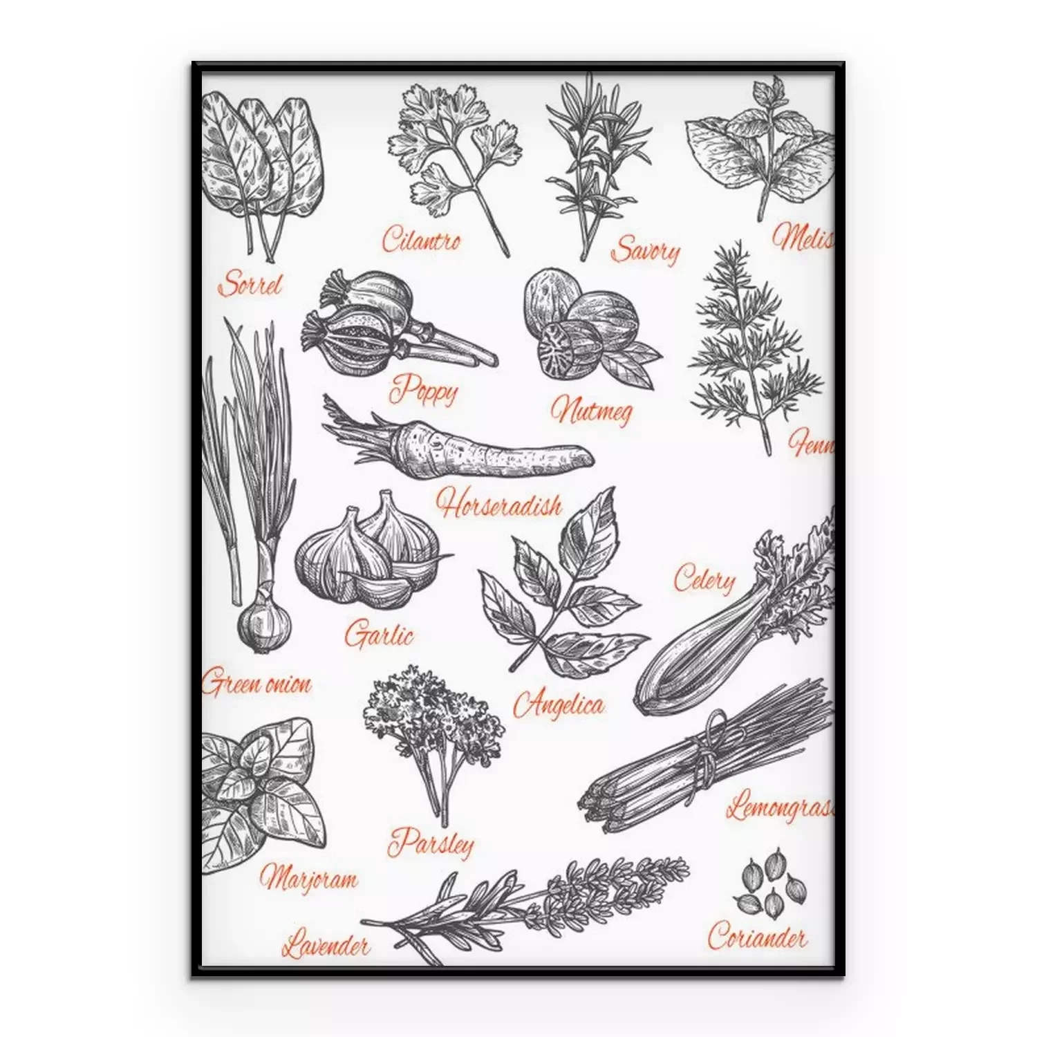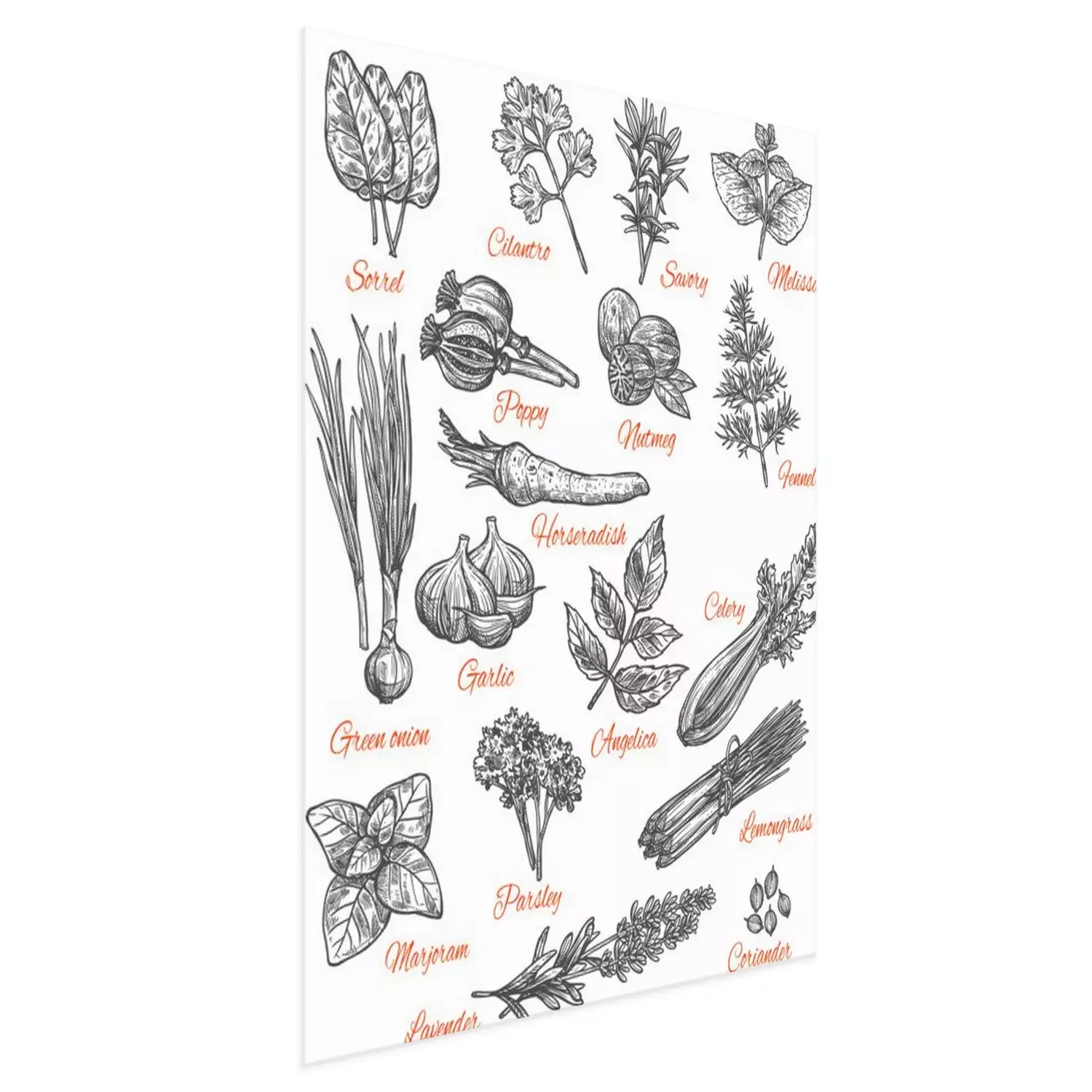 Poster Skizzen von Pflanzen und Gemüse mit Beschriftungen