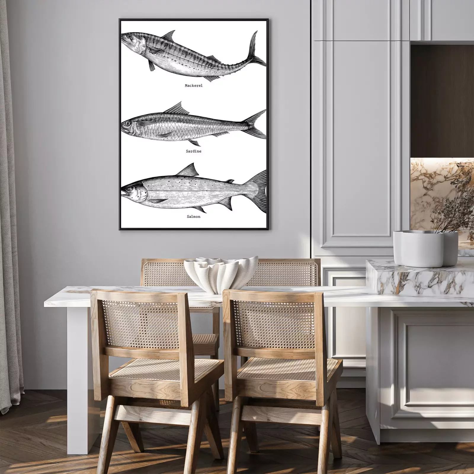 Poster: Skizzierte Fischarten