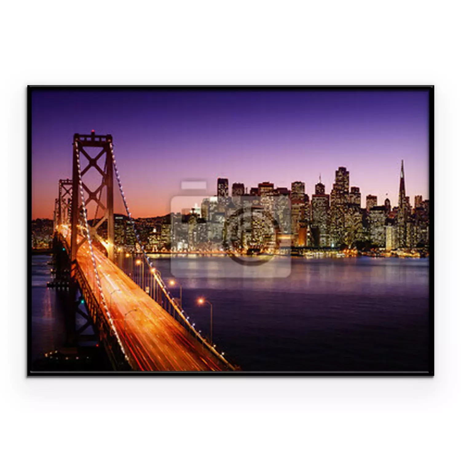 Poster: Skyline von San Francisco und Bay Bridge bei Sonnenuntergang, California