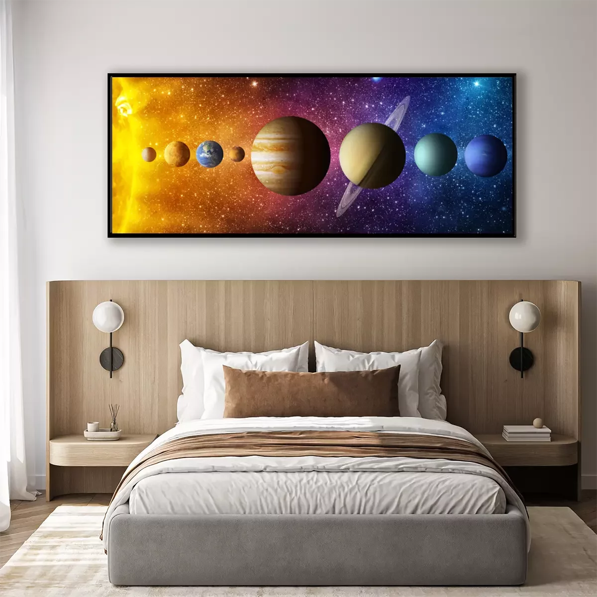 Poster: Solar system planet, comet, sun and star. Elements of this image furnished by NASA. Sun, mercury, Venus, planet earth, Mars, Jupiter, Saturn, Uranus, Neptune. Science and education background.