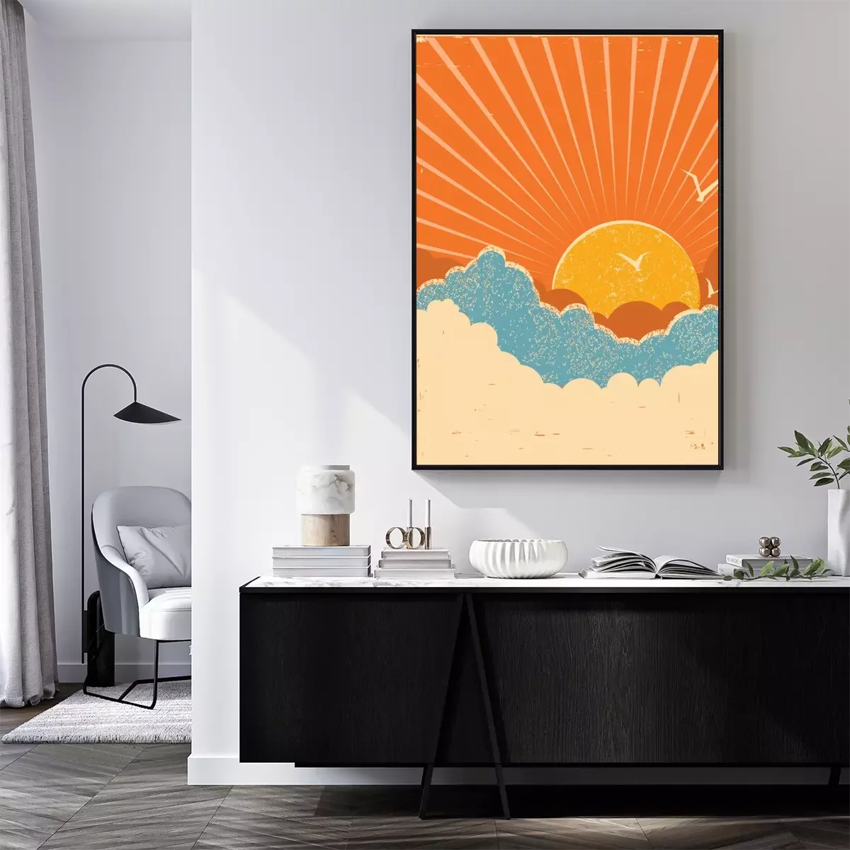 Poster: Sonnenaufgang in der Retro-Illustration