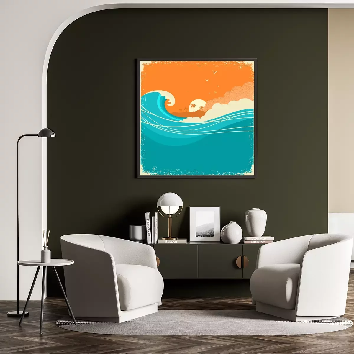 Poster: Sonnenaufgang Meer im Vintage-Stil