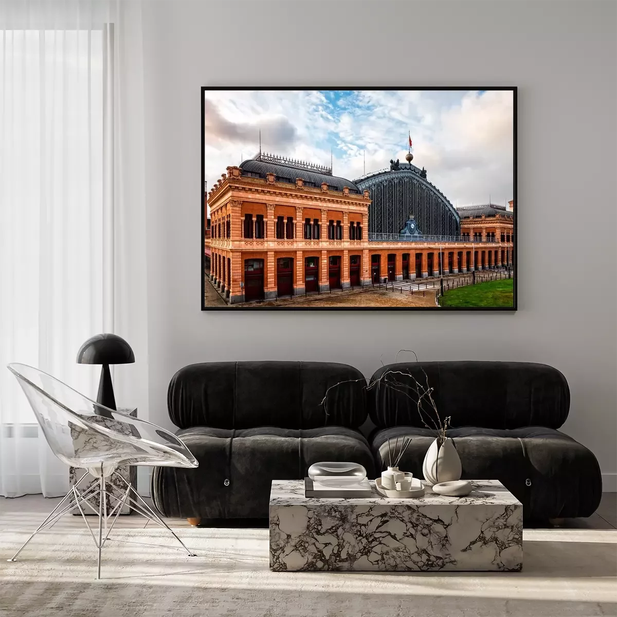 Poster Sonnenaufgang über dem Bahnhof in Madrid