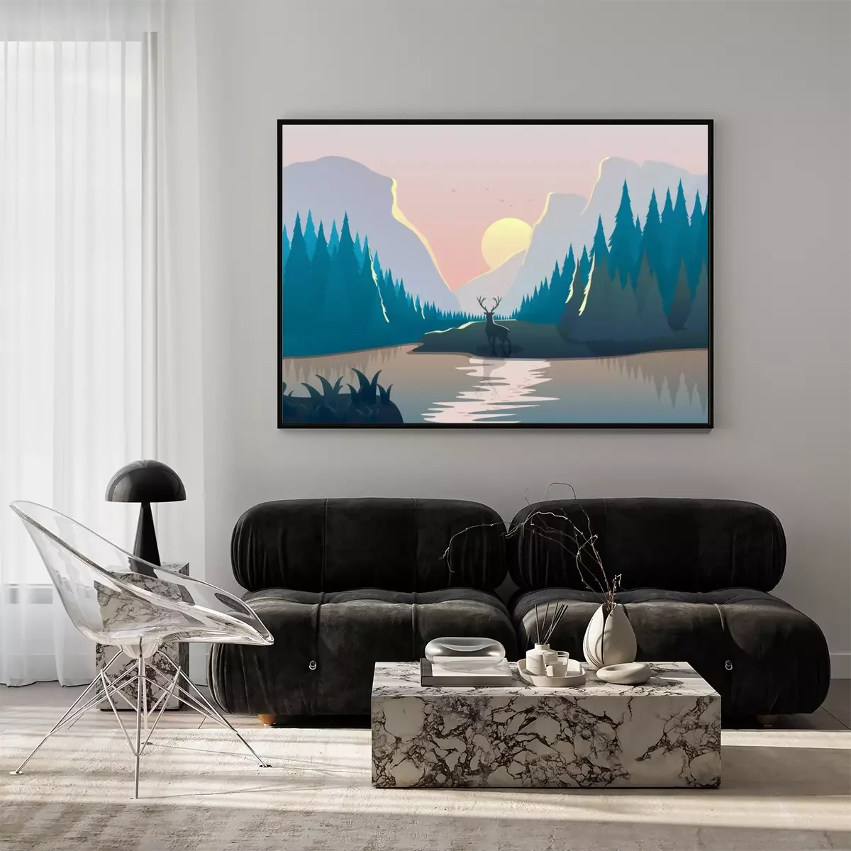 Poster Sonnenaufgang Wald Illustration