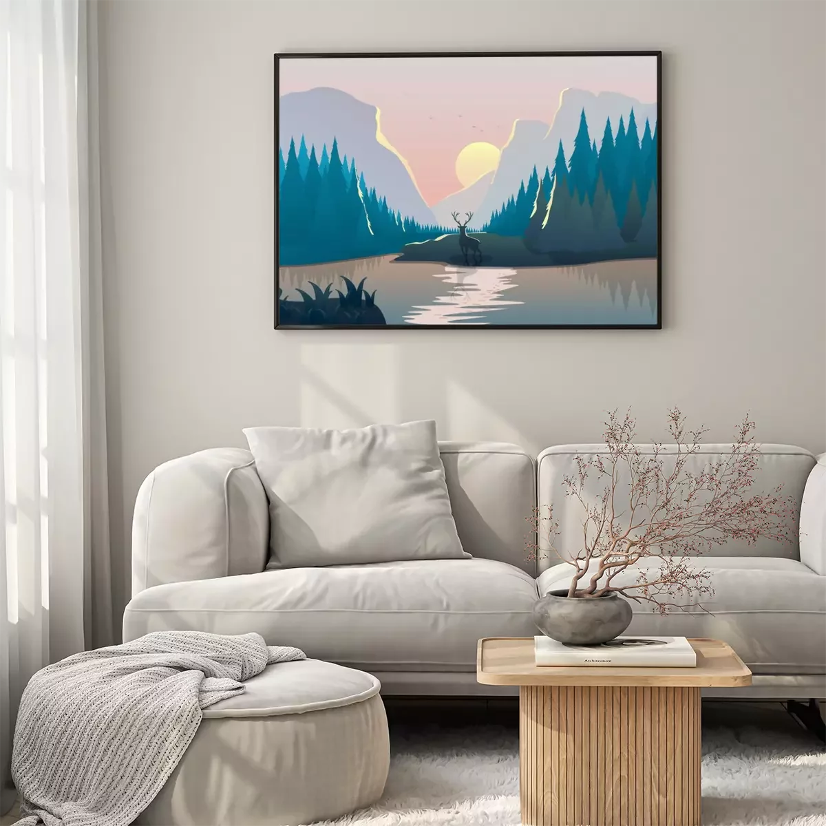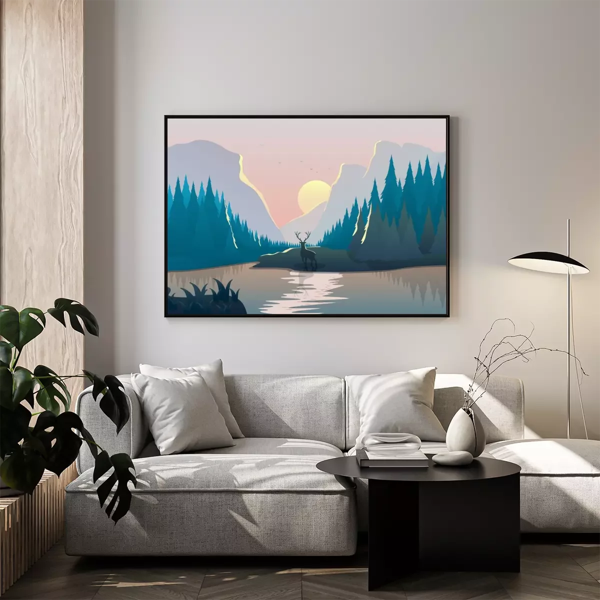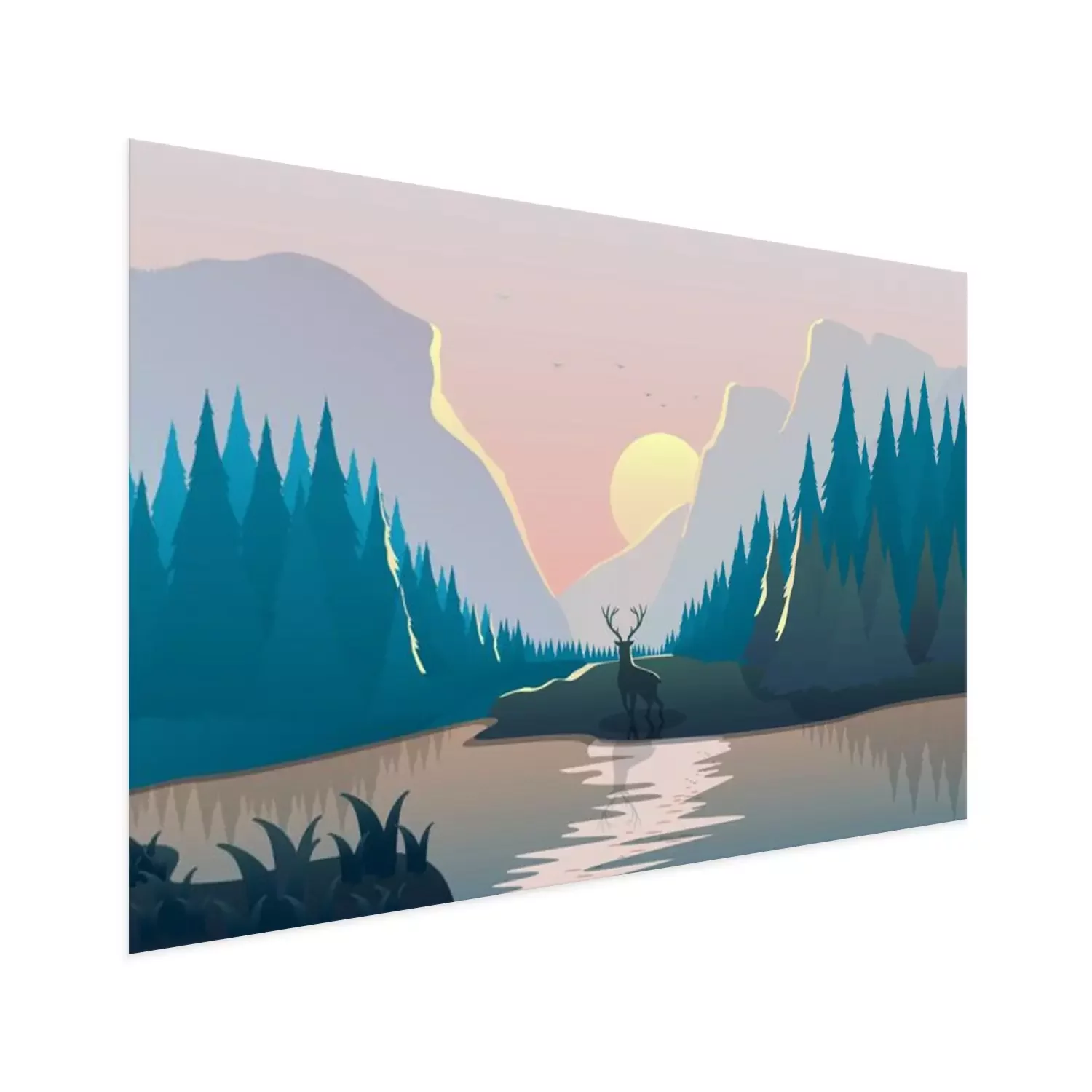Poster: Sonnenaufgang Wald Illustration