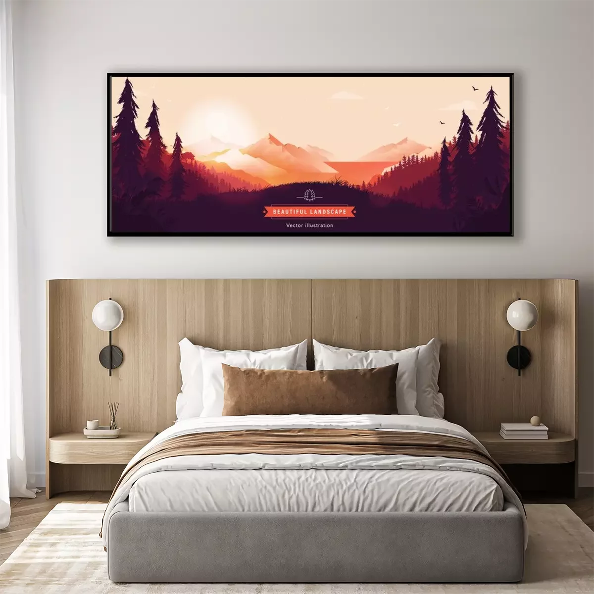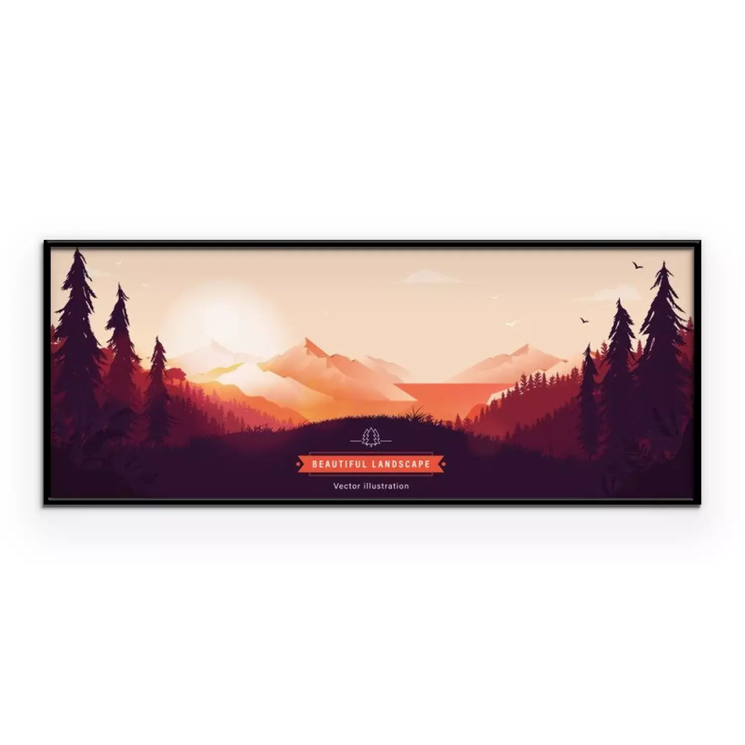 Poster: Sonnenaufgang Wald im Retro-Stil