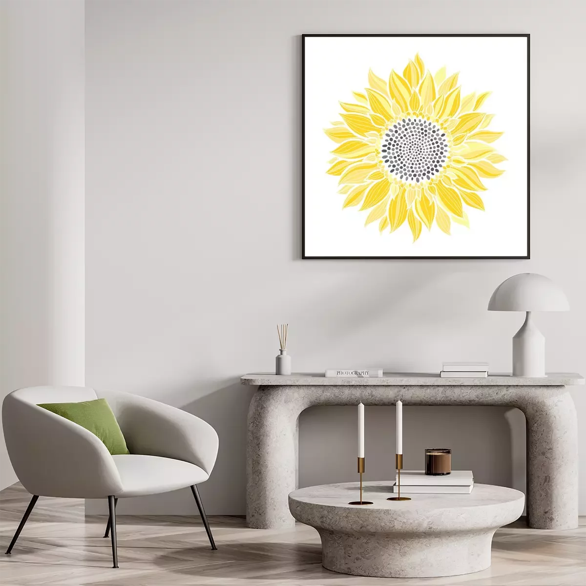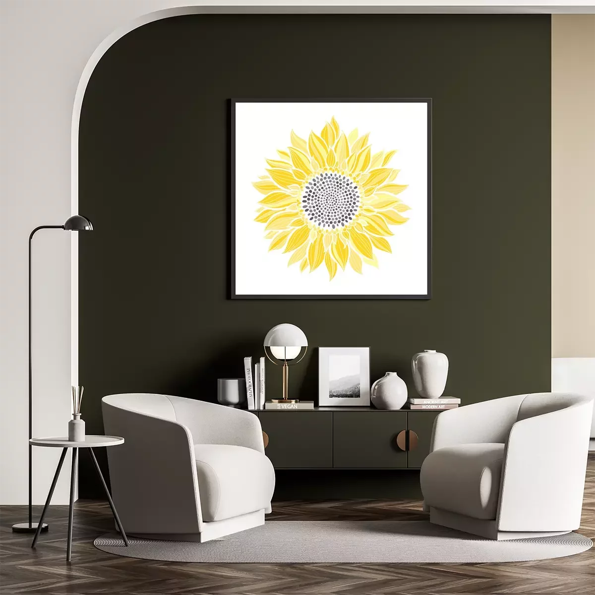 Vier Sonnenblumen auf einer Illustration