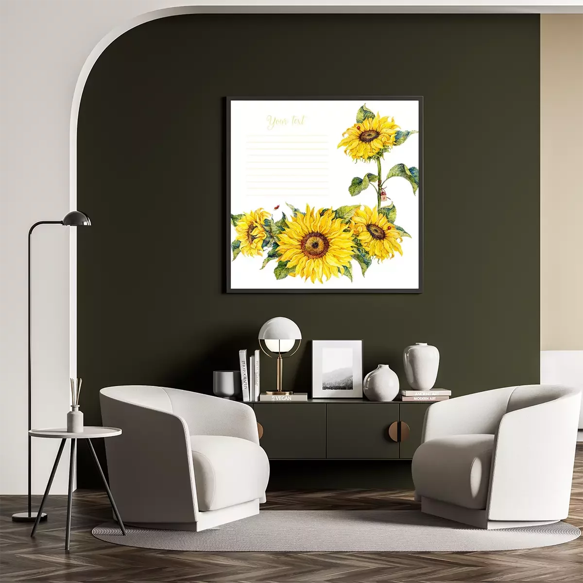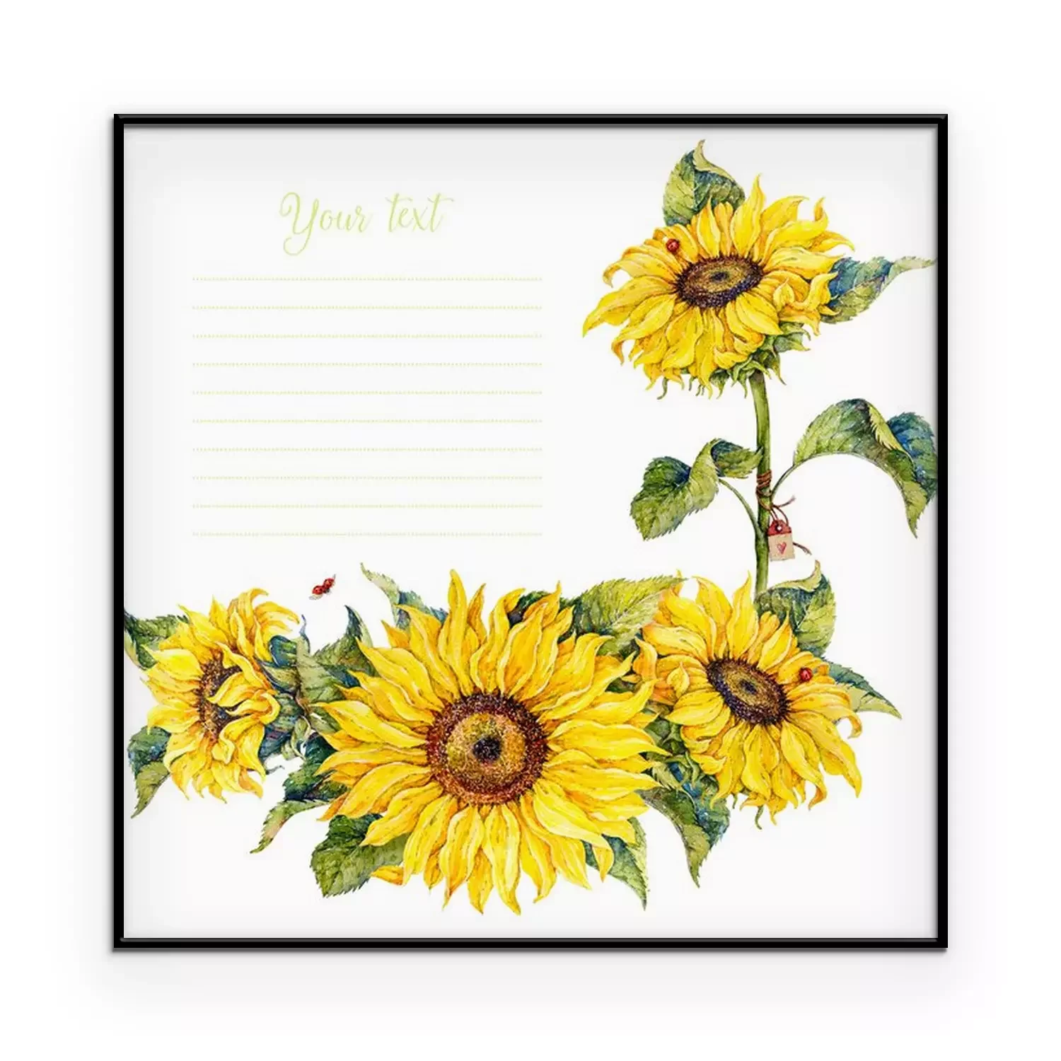 Poster: Sonnenblumen und rote Marienkäfer