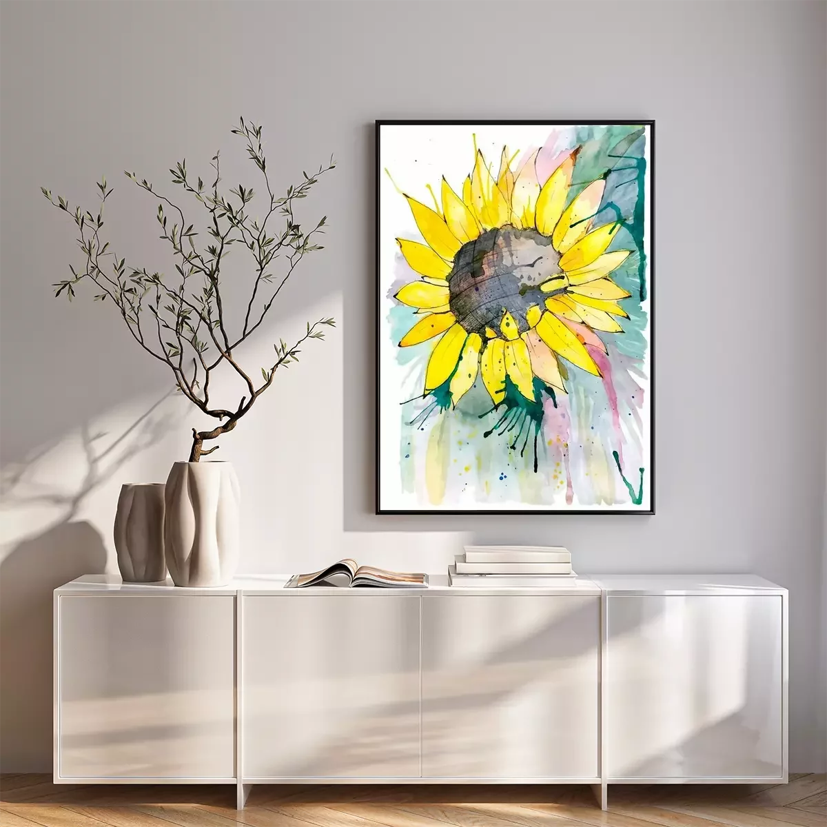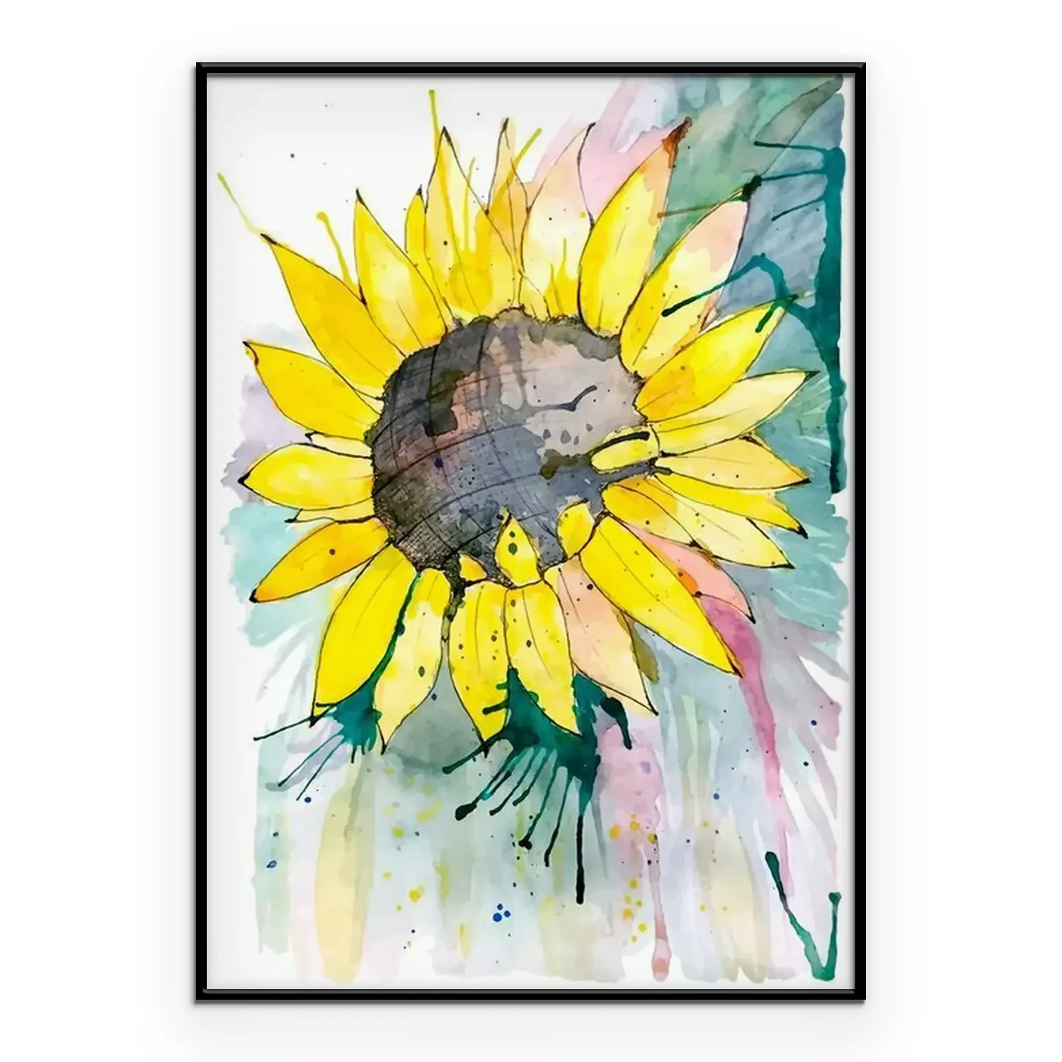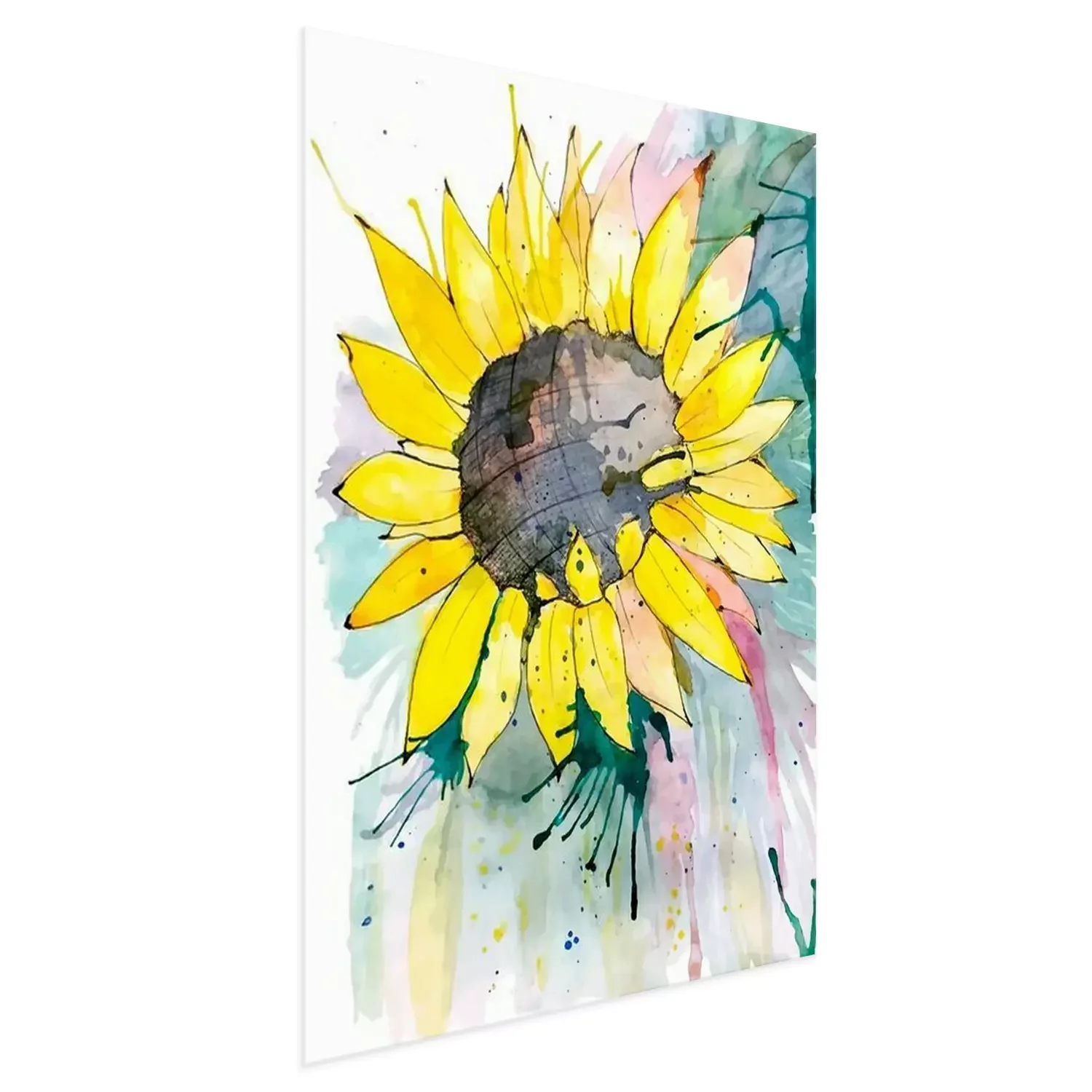 Poster: Sonnenblumen und verschüttete Farbflecken