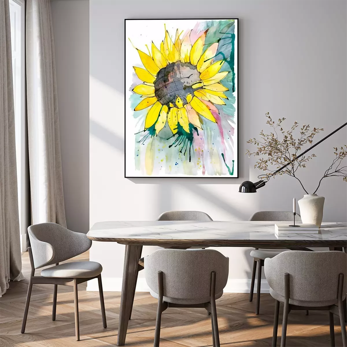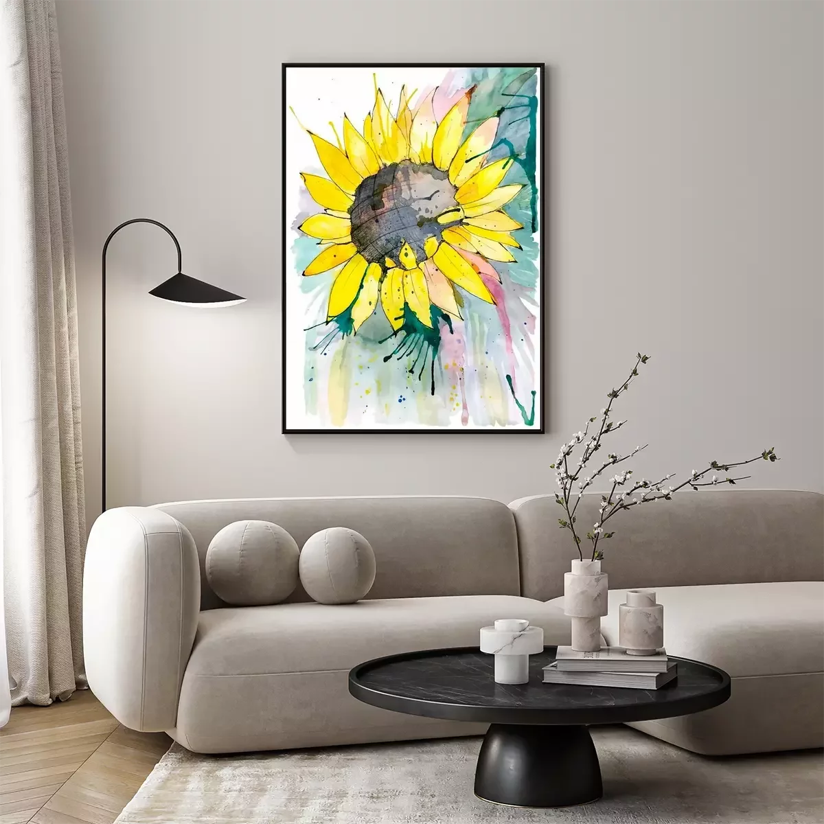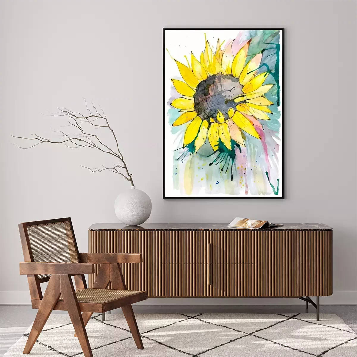 Poster: Sonnenblumen und verschüttete Farbflecken
