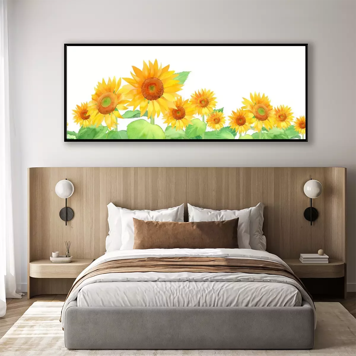 Poster: Sonnenblumenfeld auf weißem Hintergrund gemalt