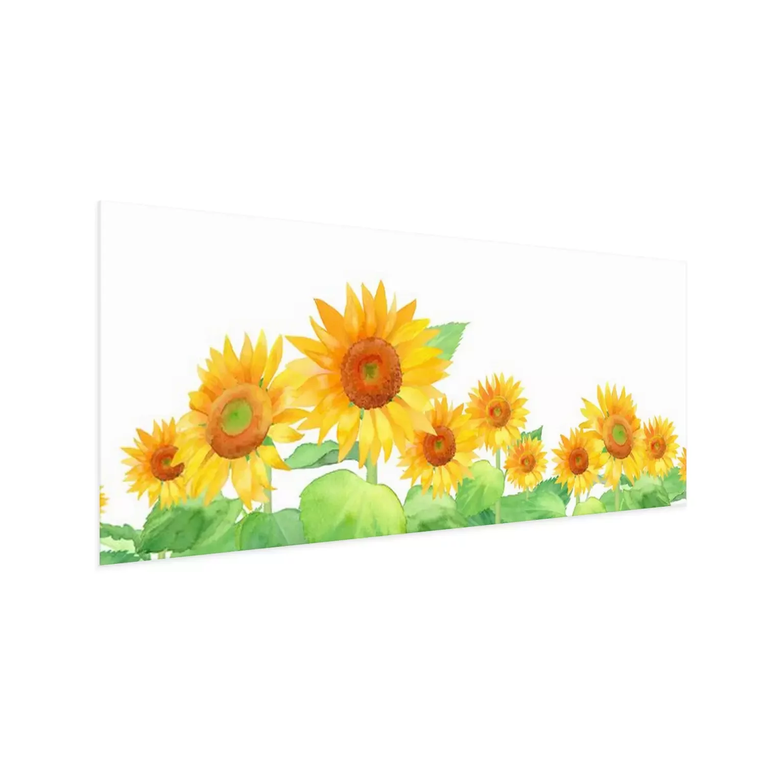 Poster Sonnenblumenfeld auf weißem Hintergrund gemalt