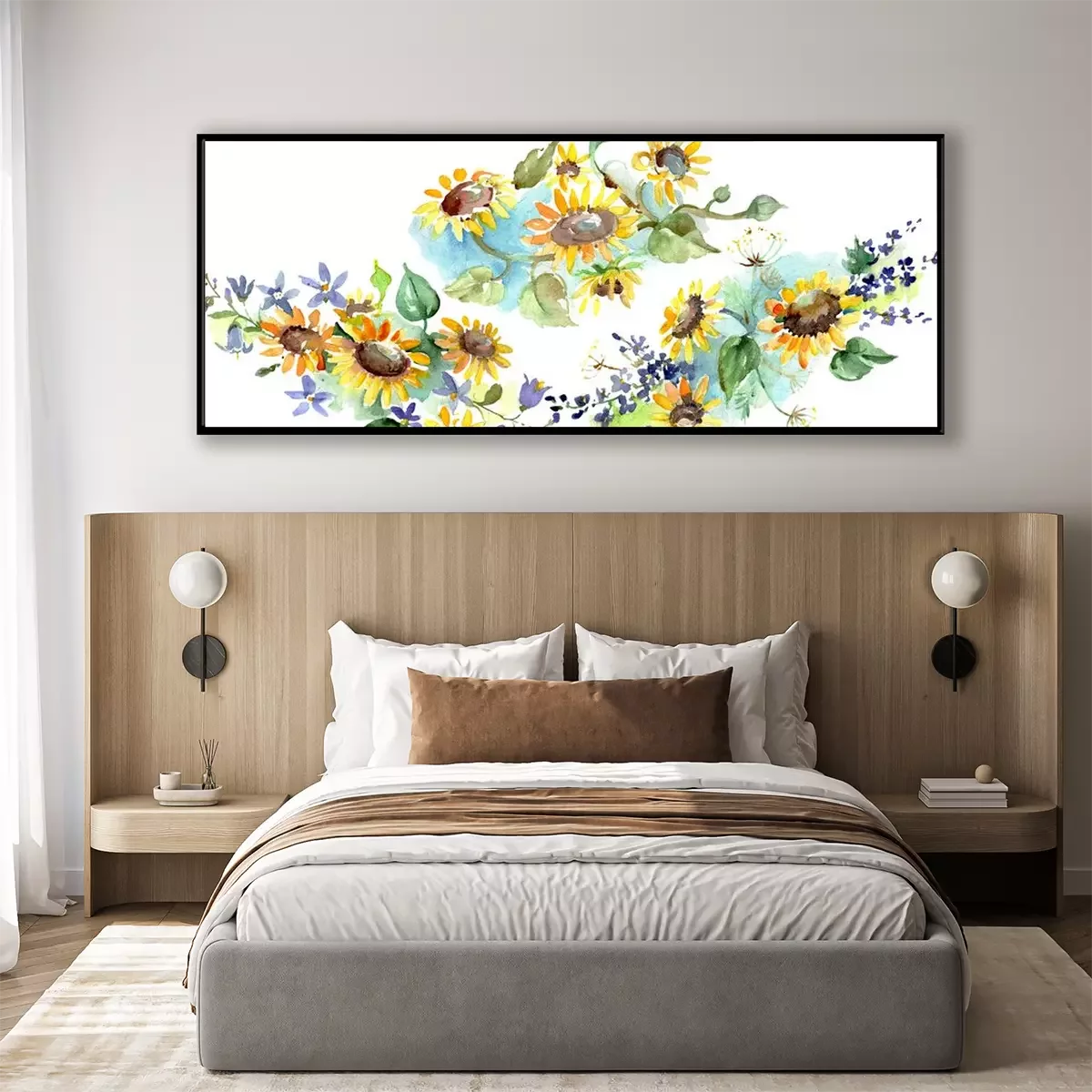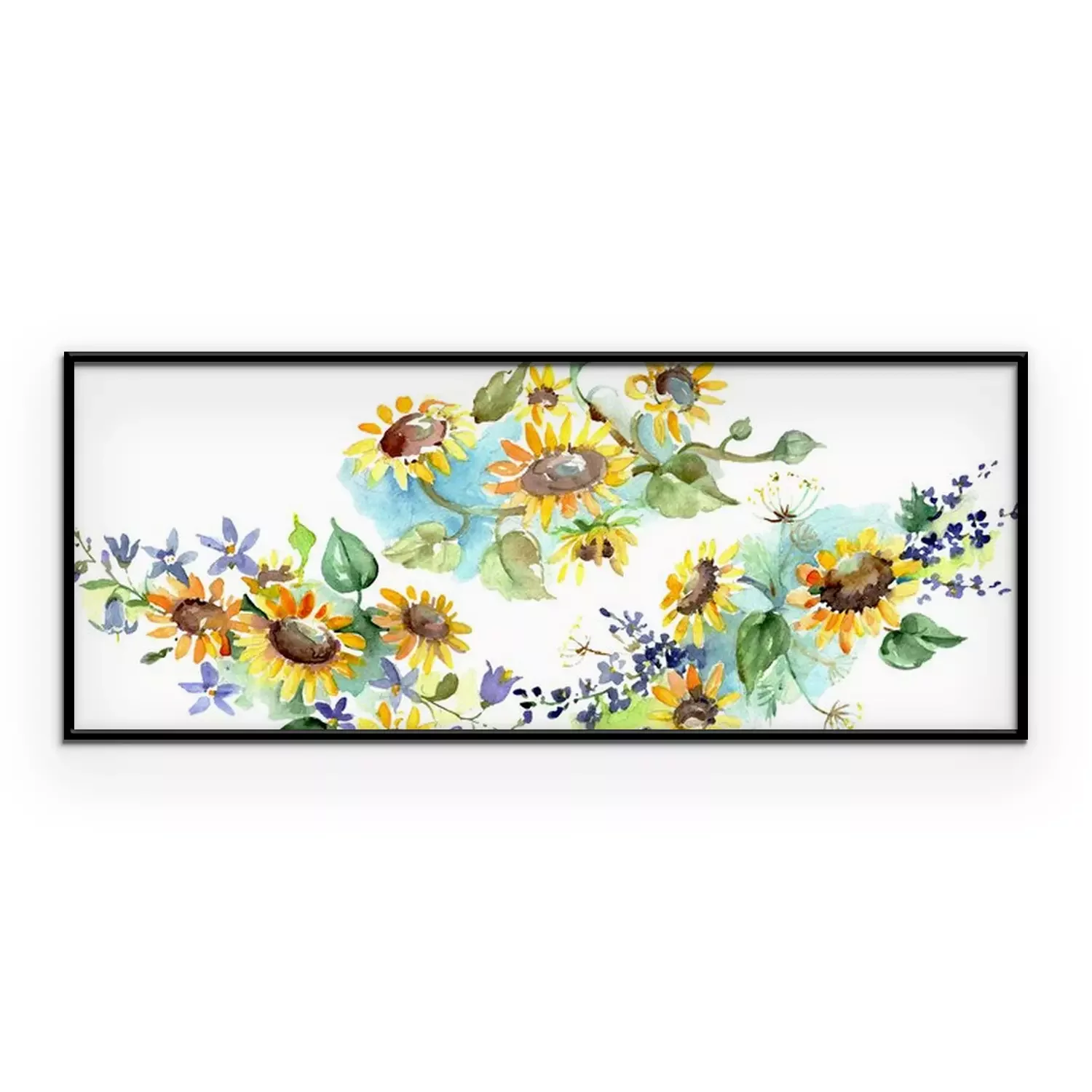 Poster: Sonnenblumensträuße und Elemente in Blau und Violett
