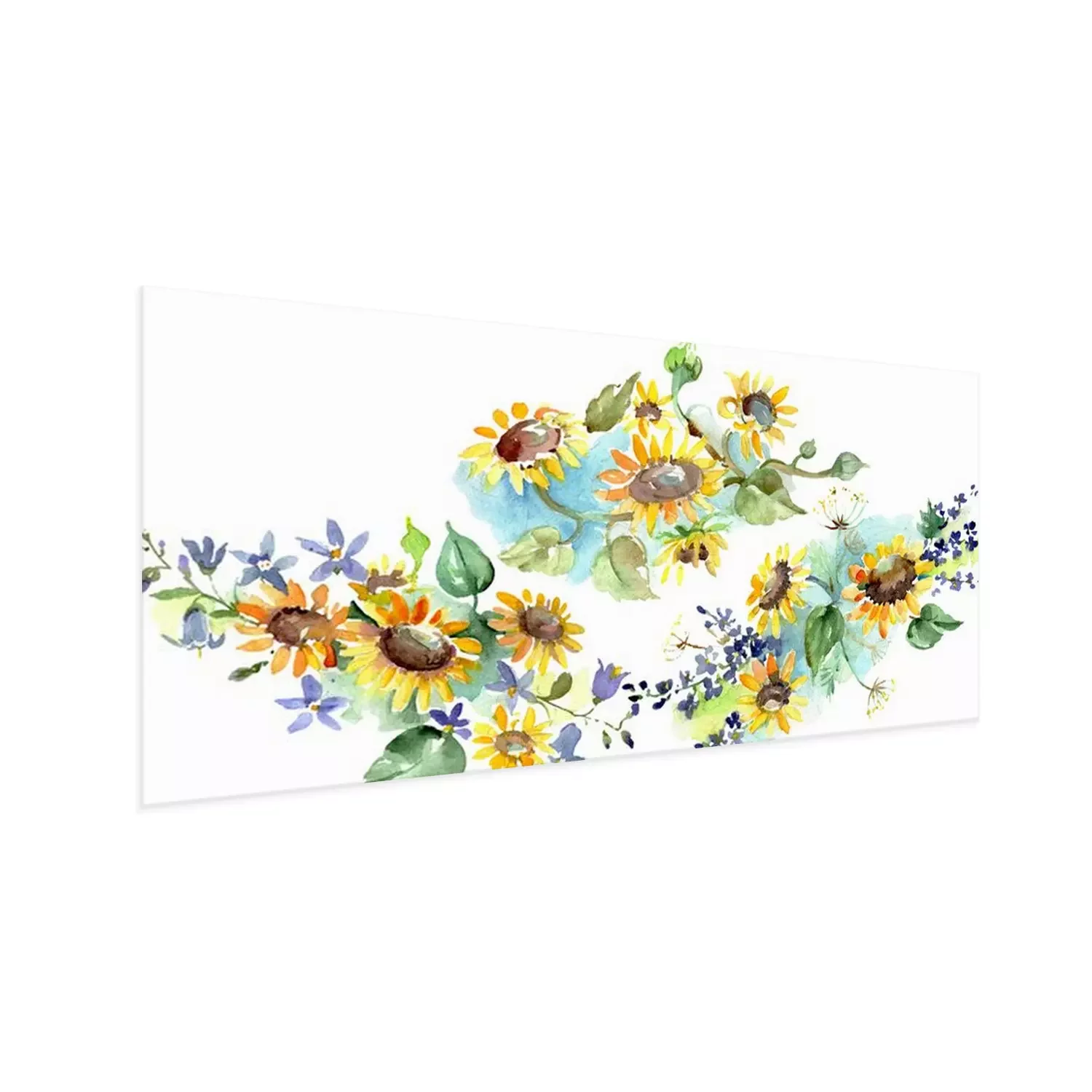 Aquarell-Sonnenblumen auf blauer Schattierung