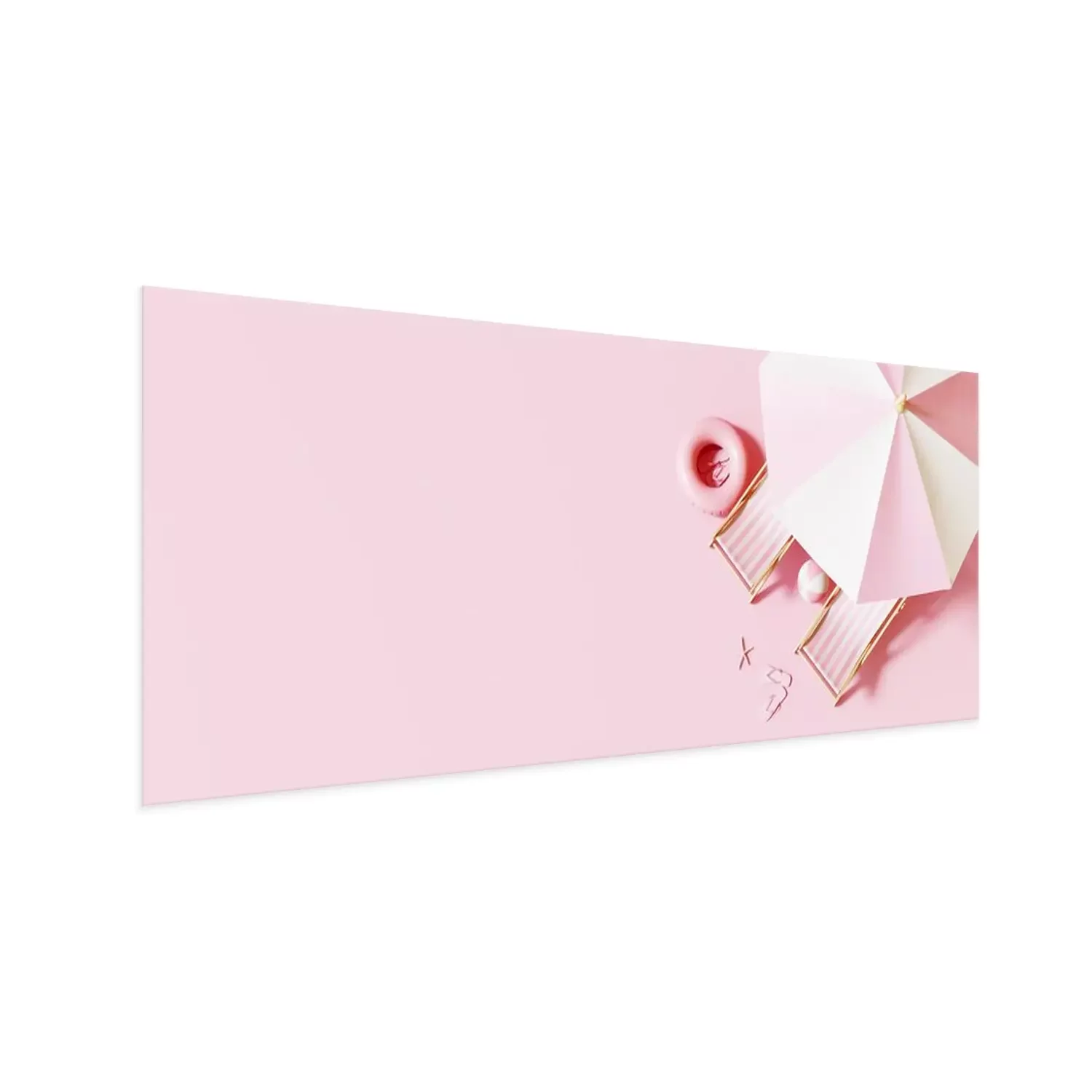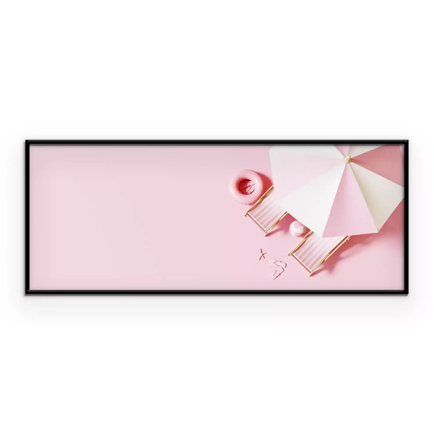 Poster: Sonnenschirm und Liegestühle in rosa Ästhetik