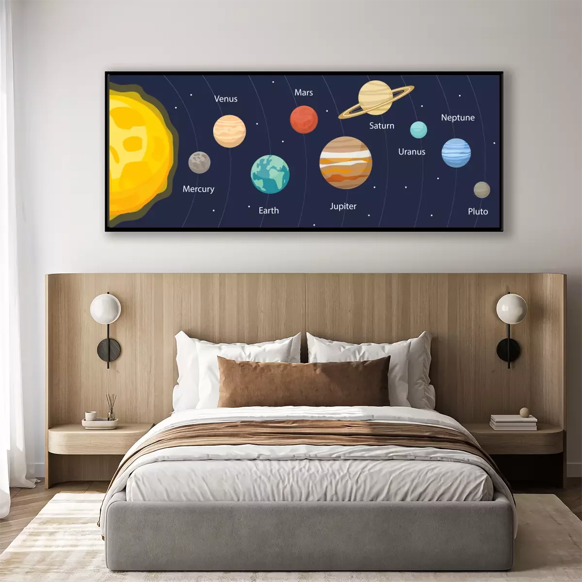 Poster Sonnensystem Kinder mit Namen der Planeten
