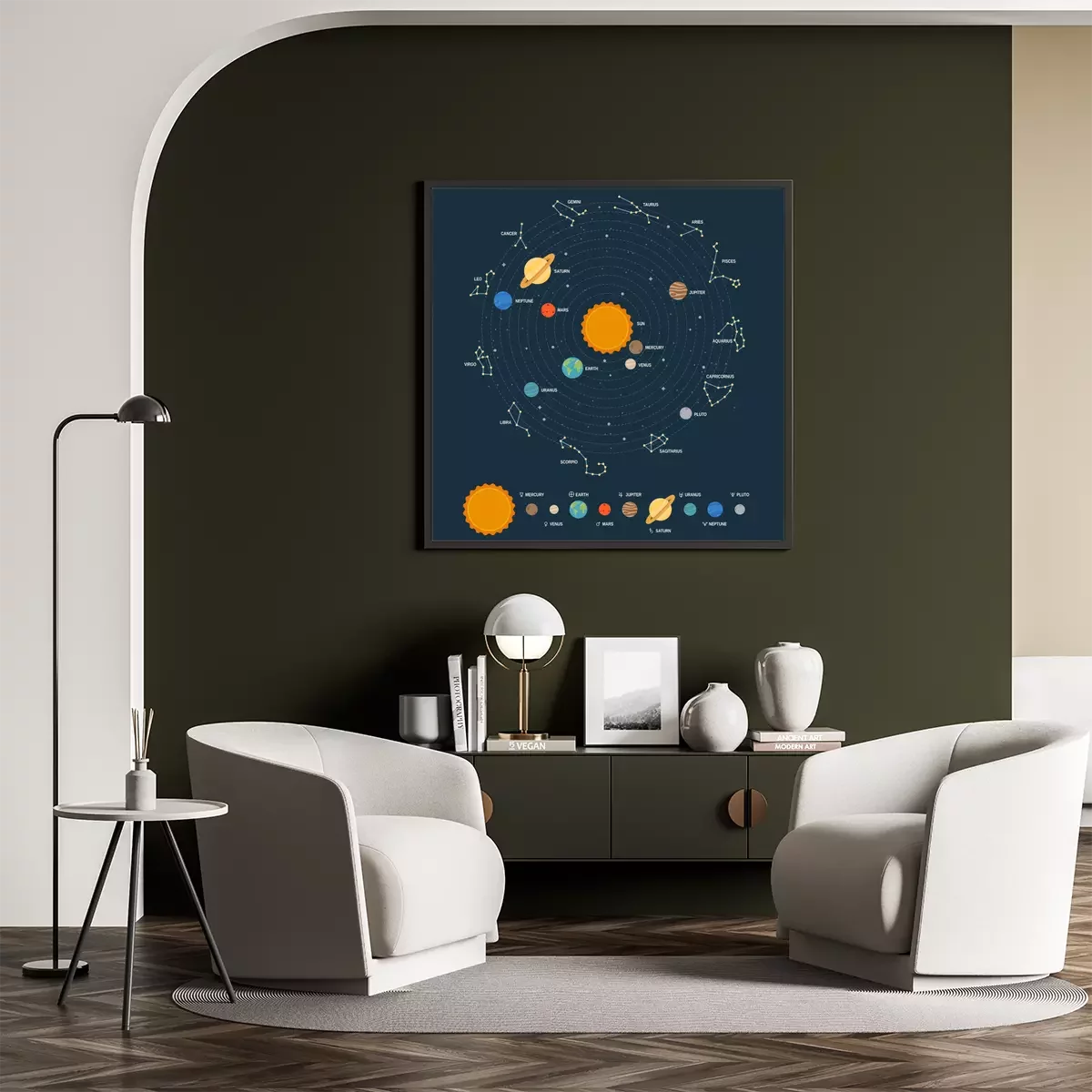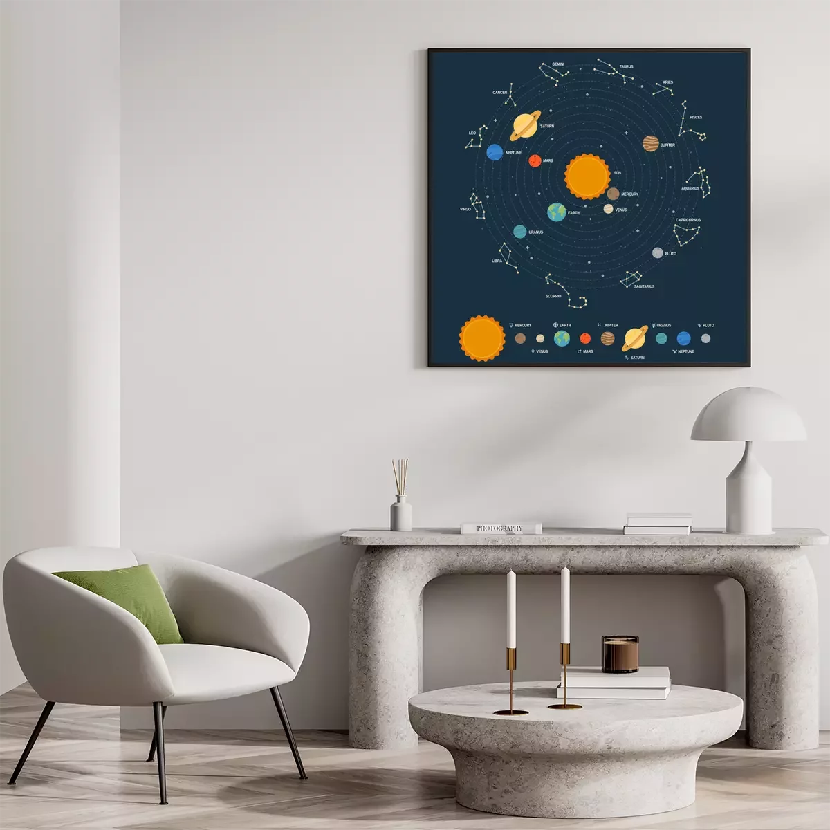 Poster Sonnensystem und Sternkonstellationen mit Namen