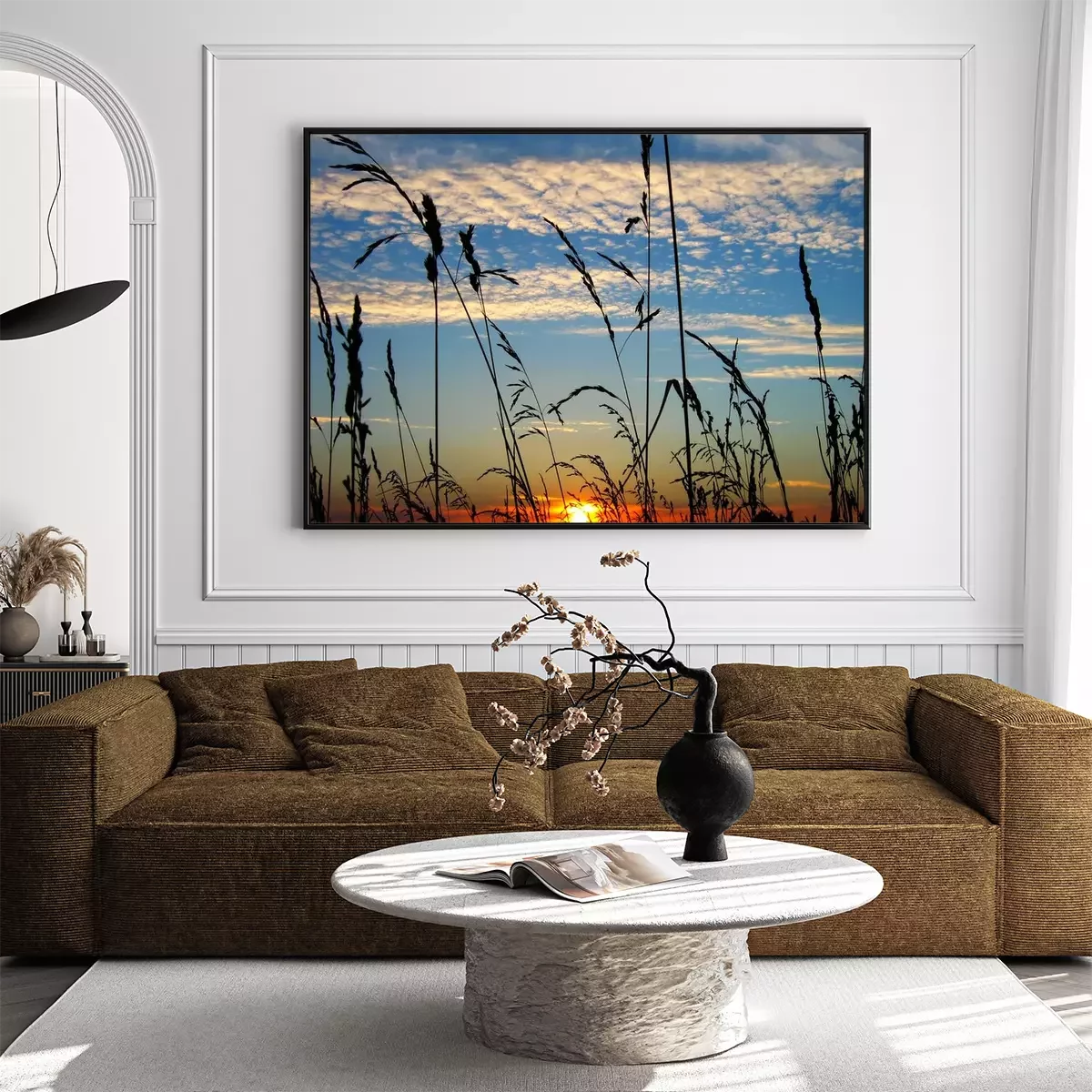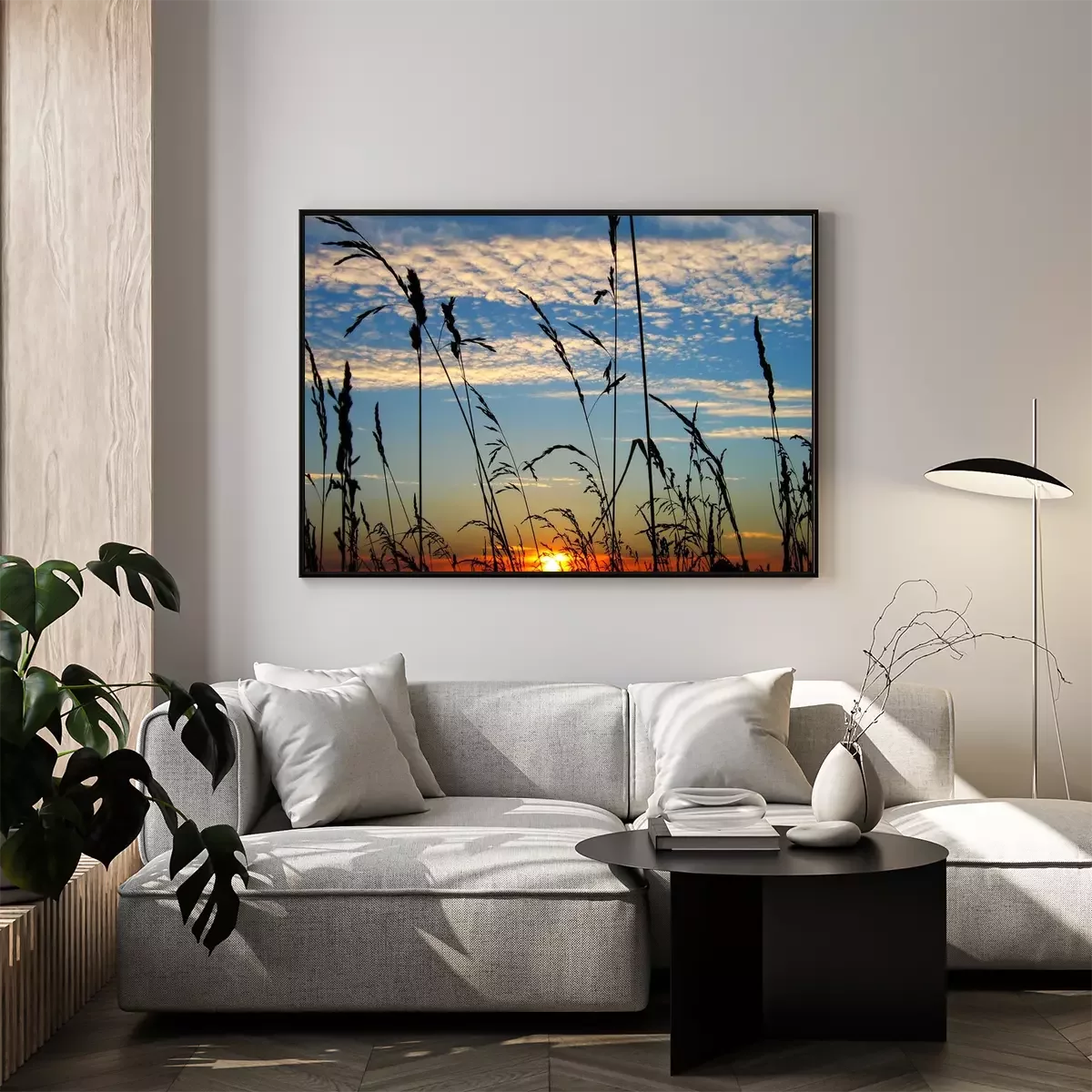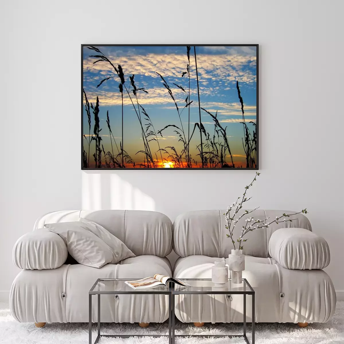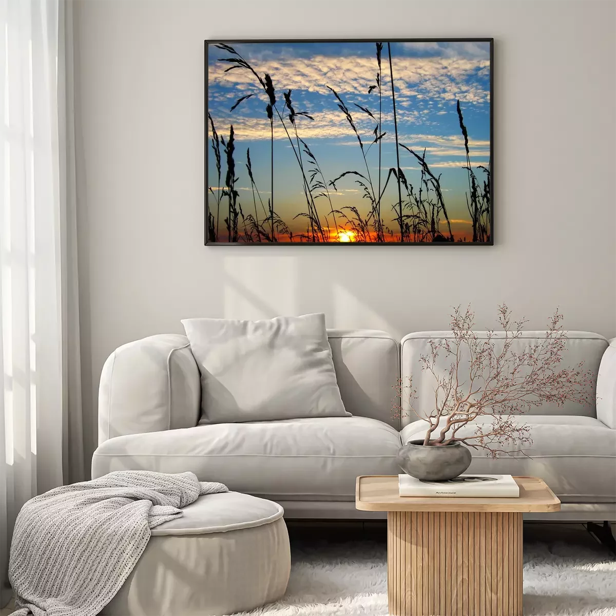 Poster Sonnenuntergang auf einem Hintergrund von Getreide