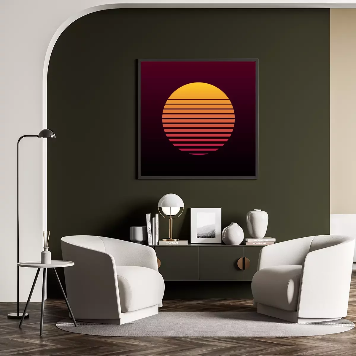 Poster: Sonnenuntergang auf Retro-Grafik