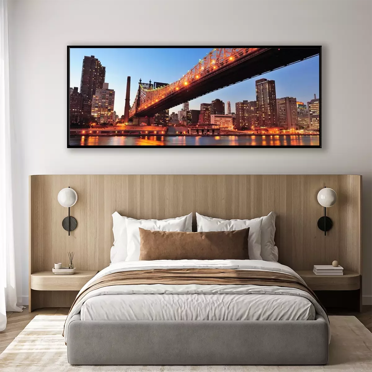 Panorama mit beleuchteten Gebäuden bei Nacht