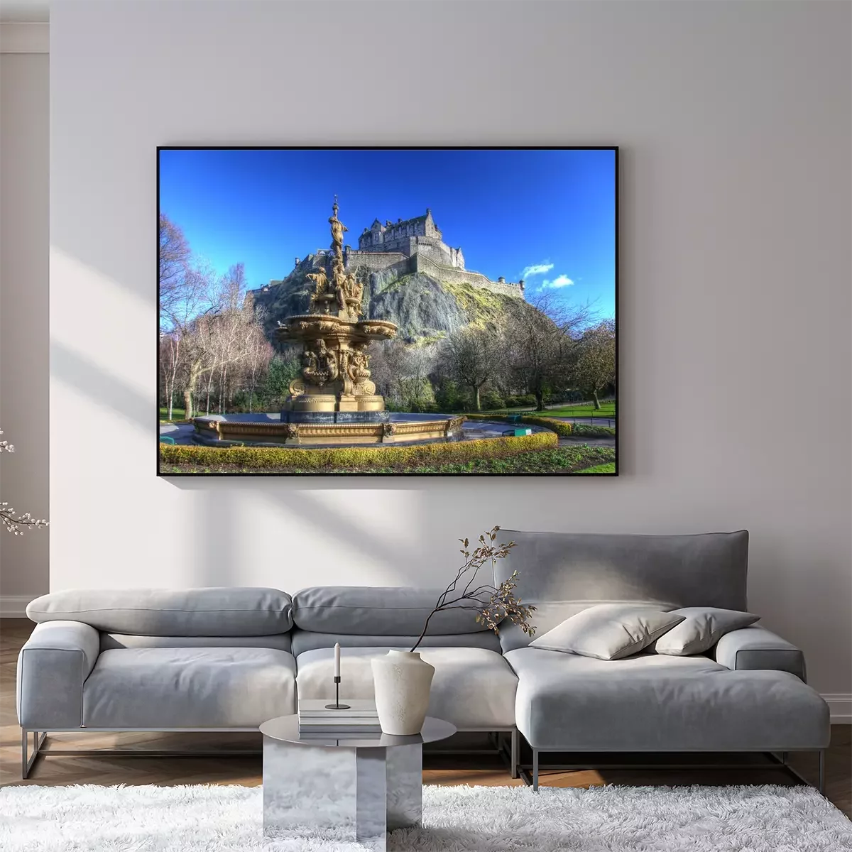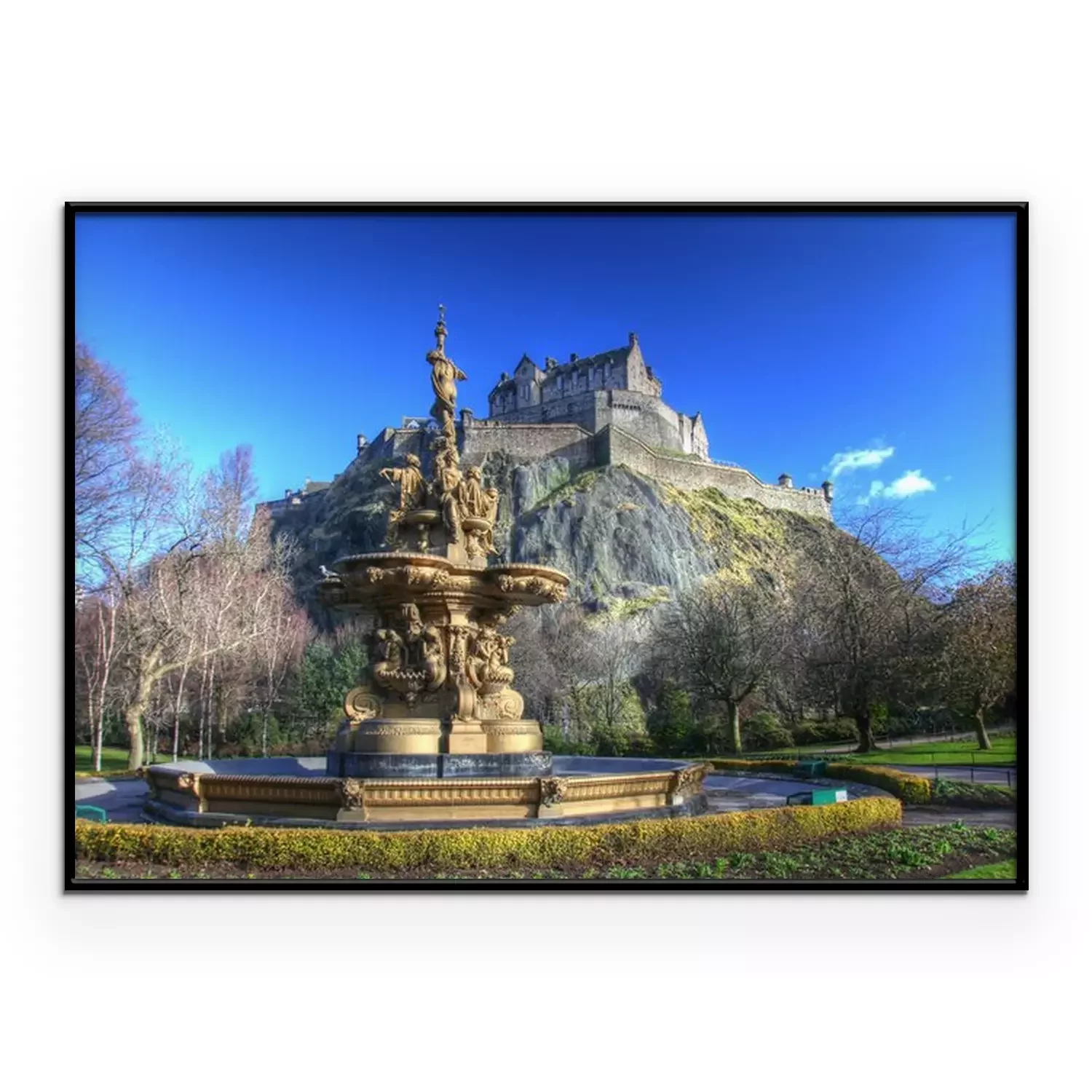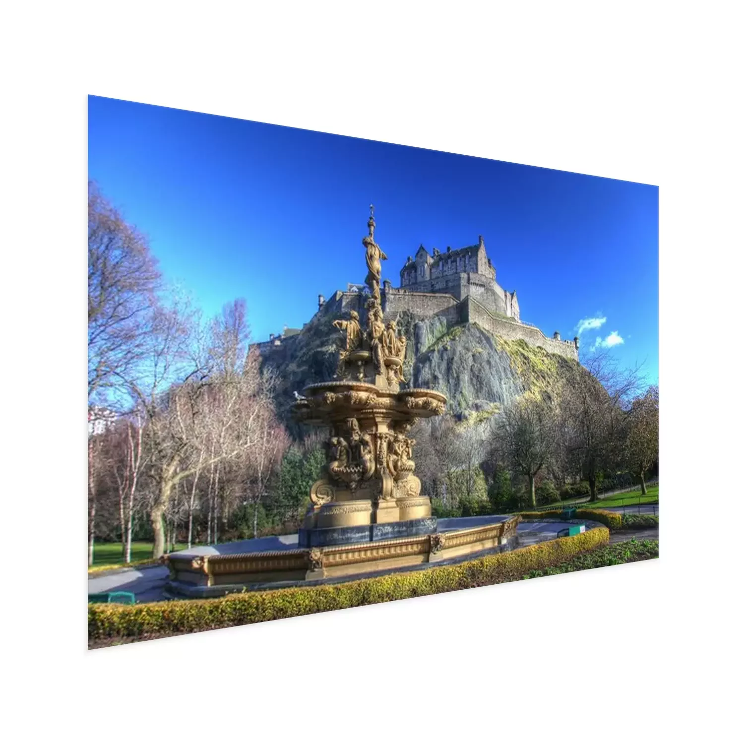 Poster: Springbrunnen vor dem Edinburgh Castle