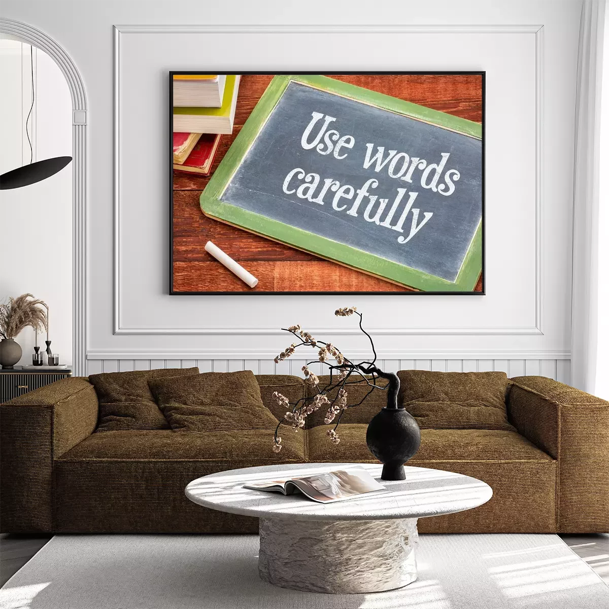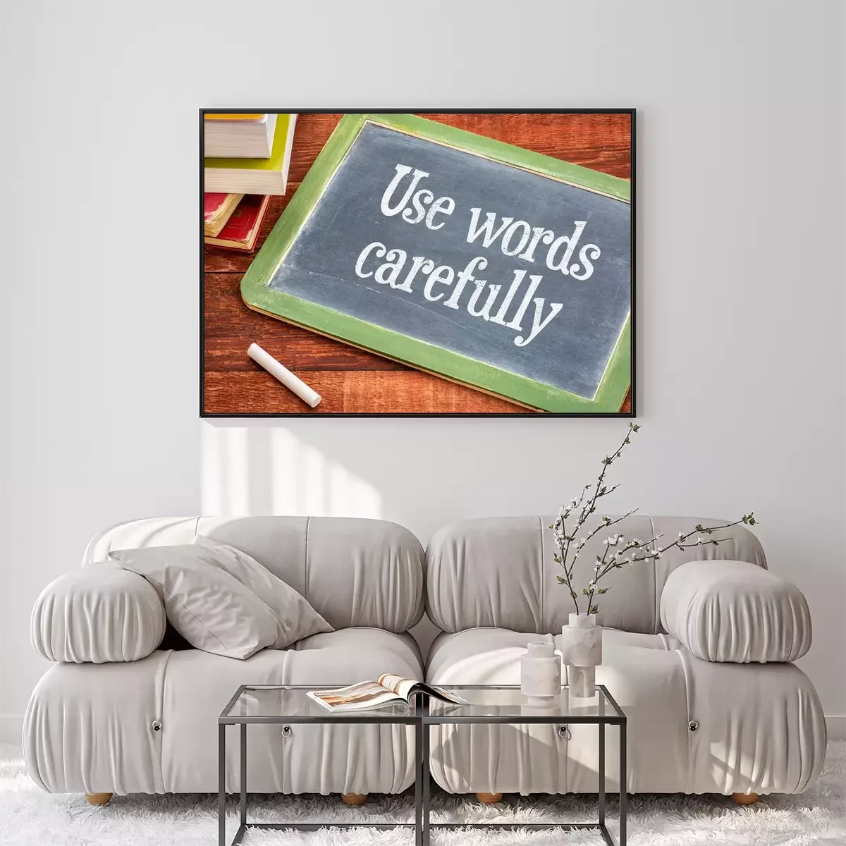 Poster: Spruch über Wörter mit Kreide geschrieben
