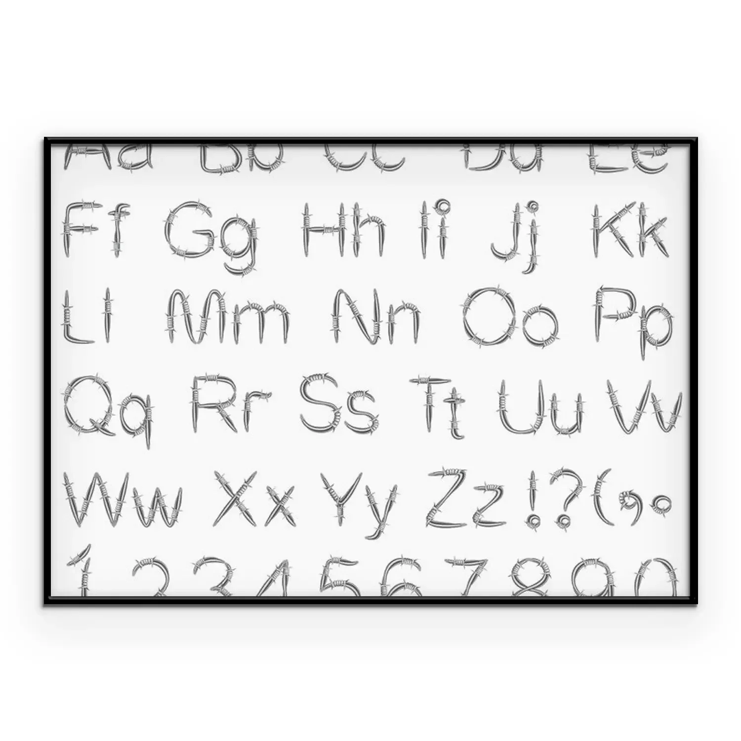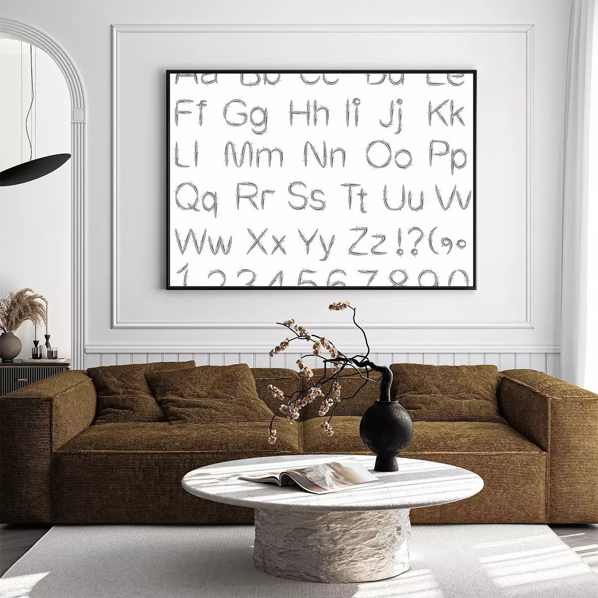 Alphabet Buchstaben schwarz und Zahlen auf weißem Hintergrund