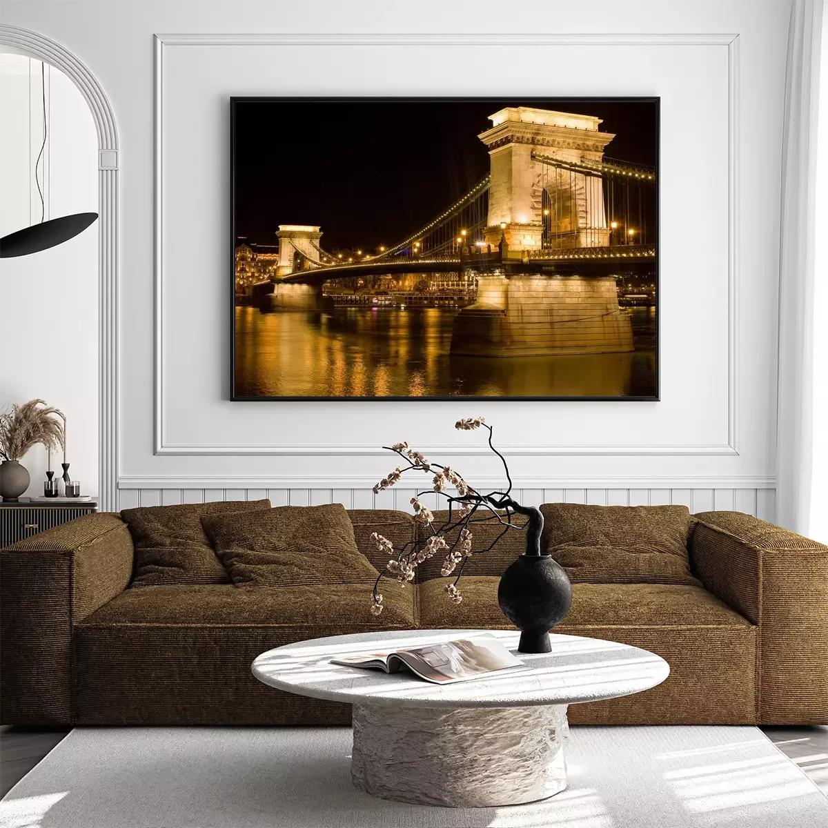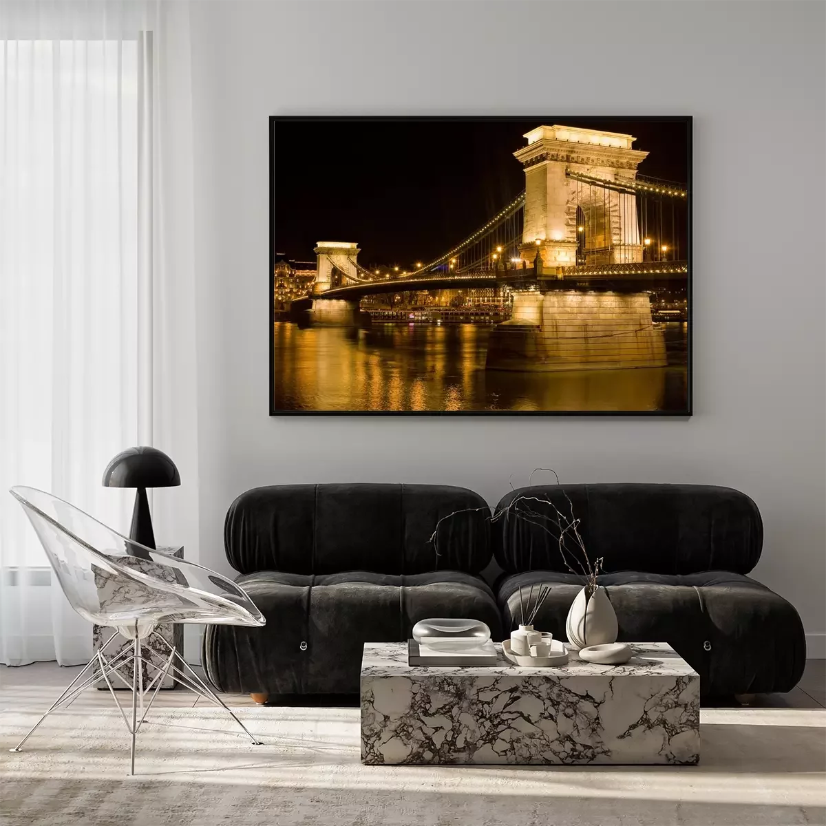 Poster: Stadt bei Nacht und Brücke im Hintergrund