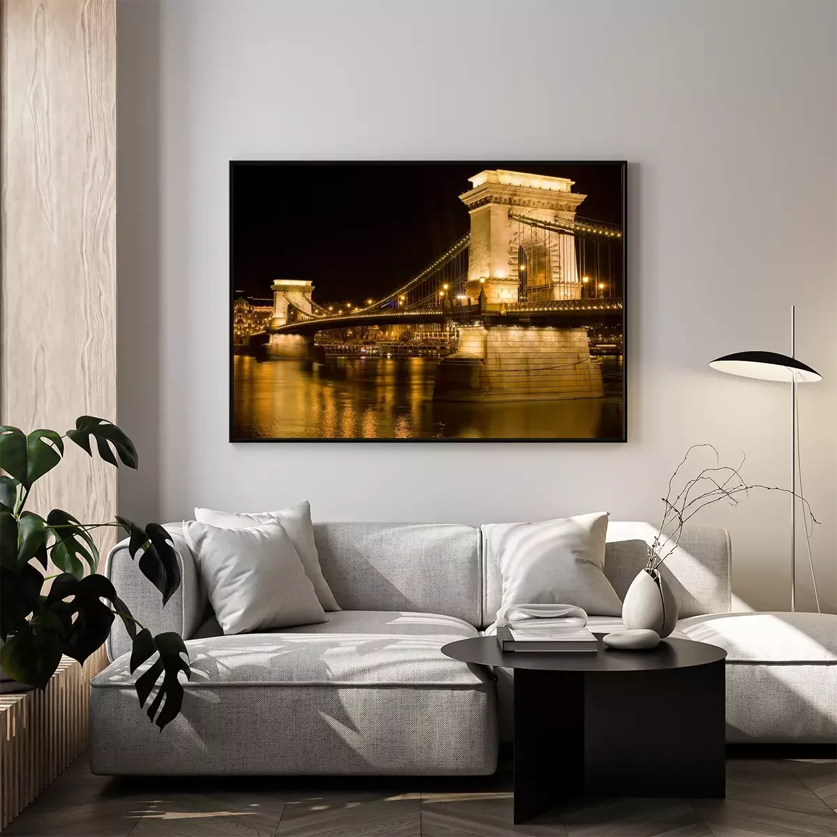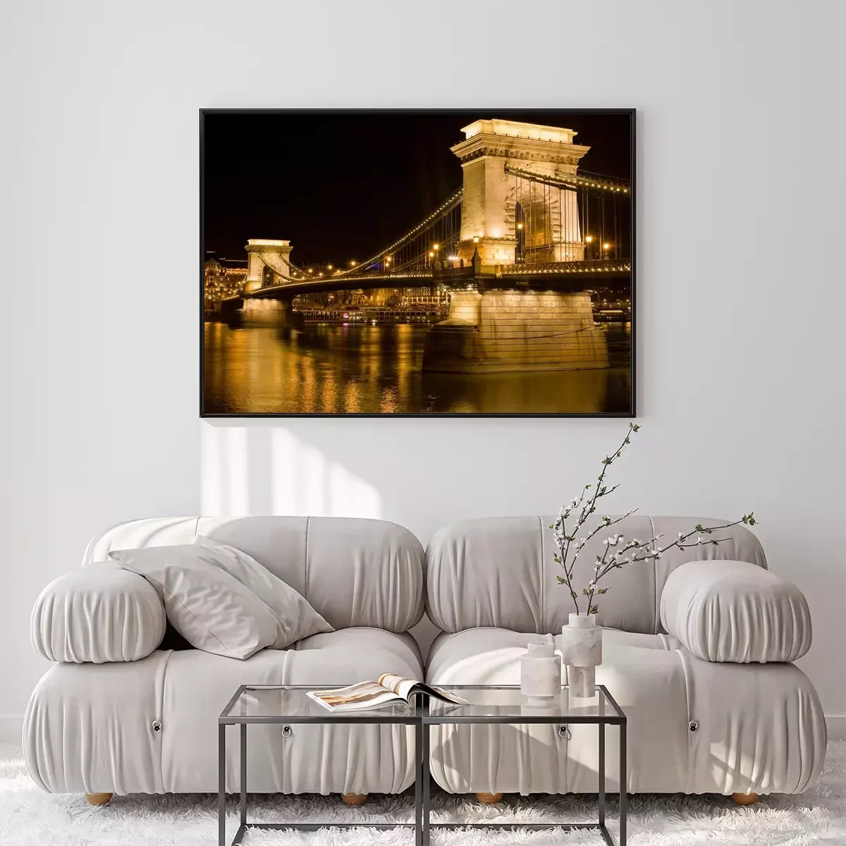 Poster Stadt bei Nacht und Brücke im Hintergrund