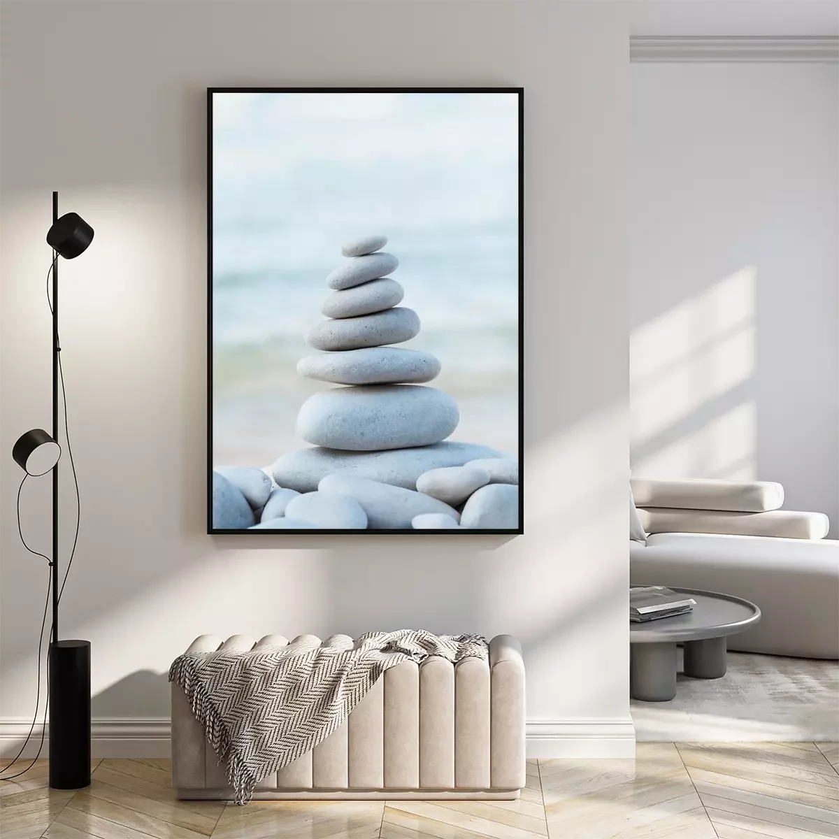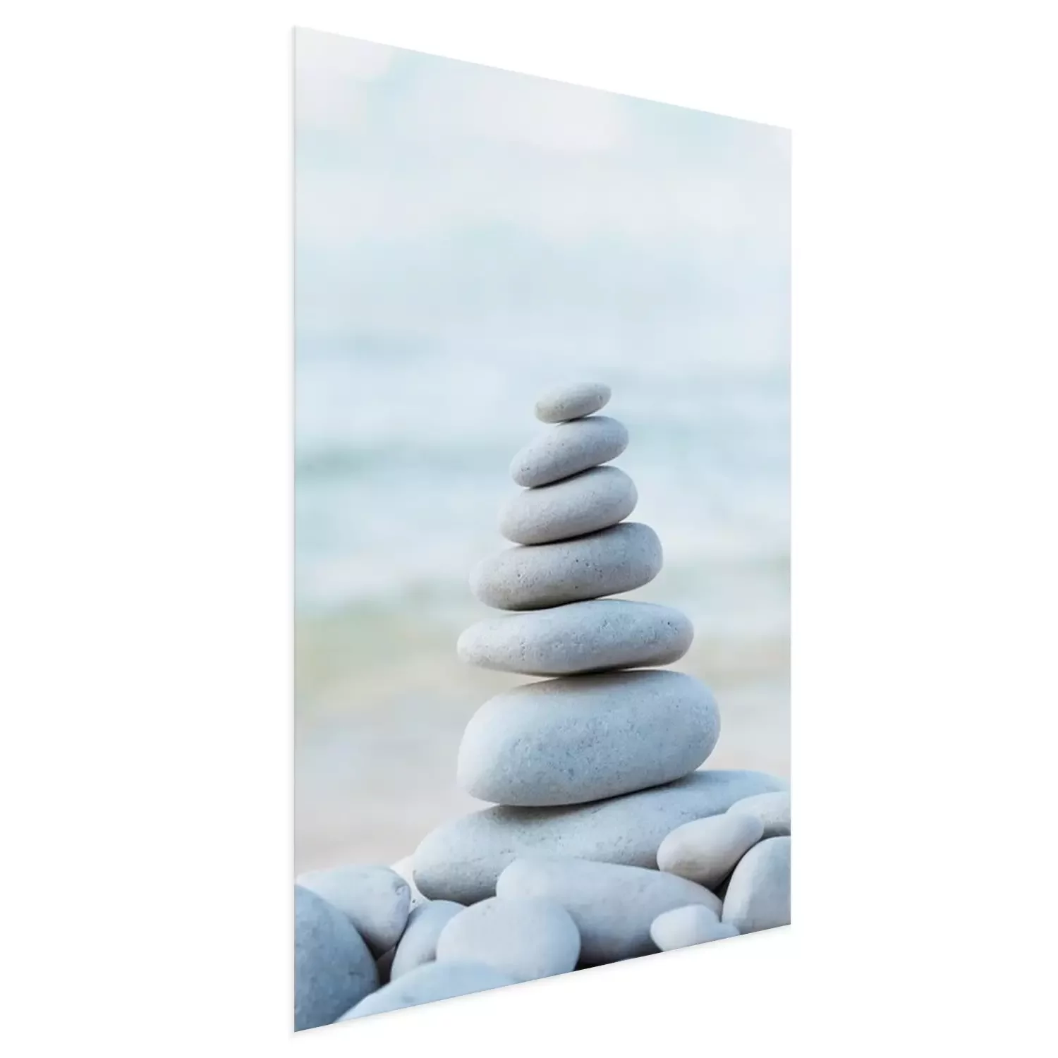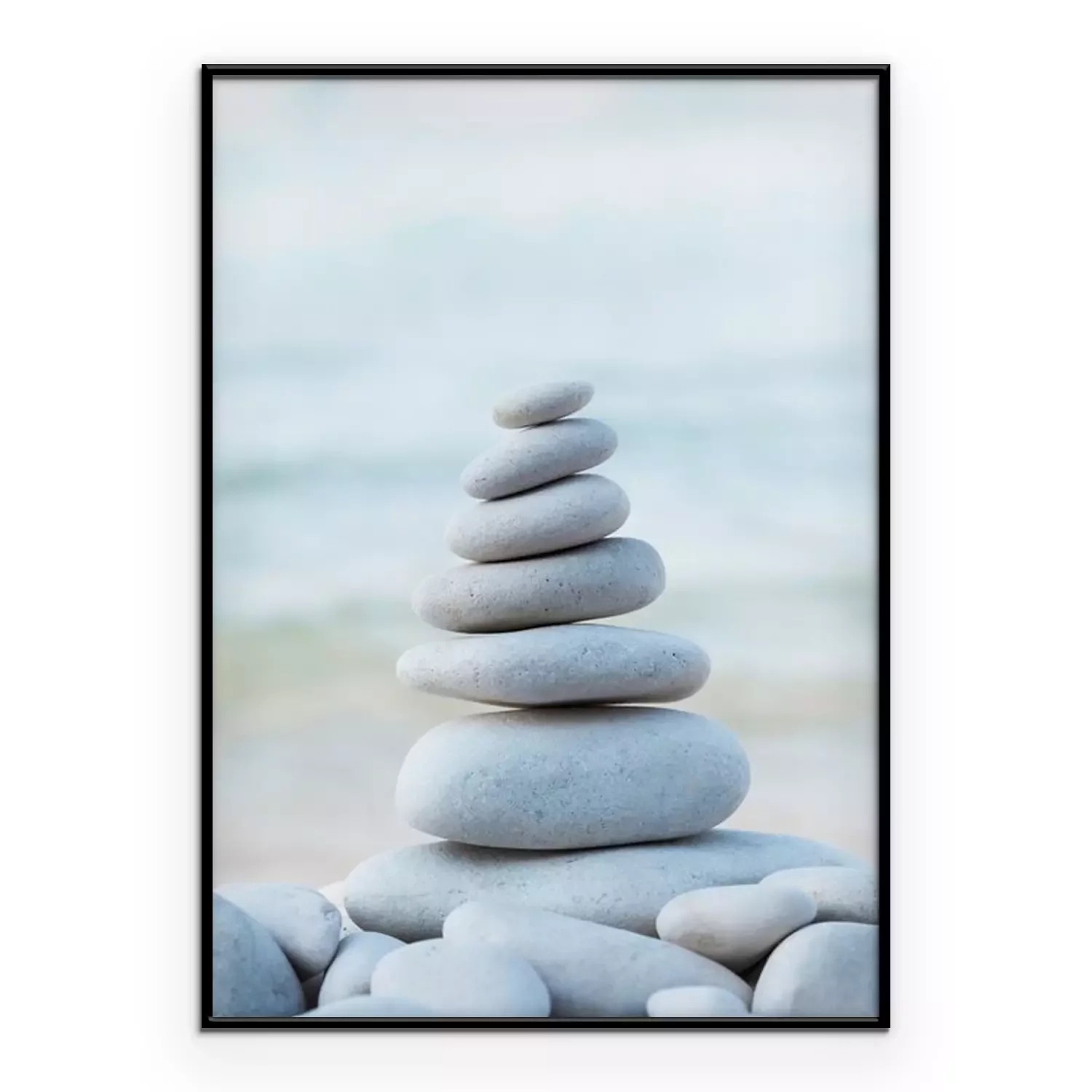 Poster: Steine am Strand mit dem Meer im Hintergrund