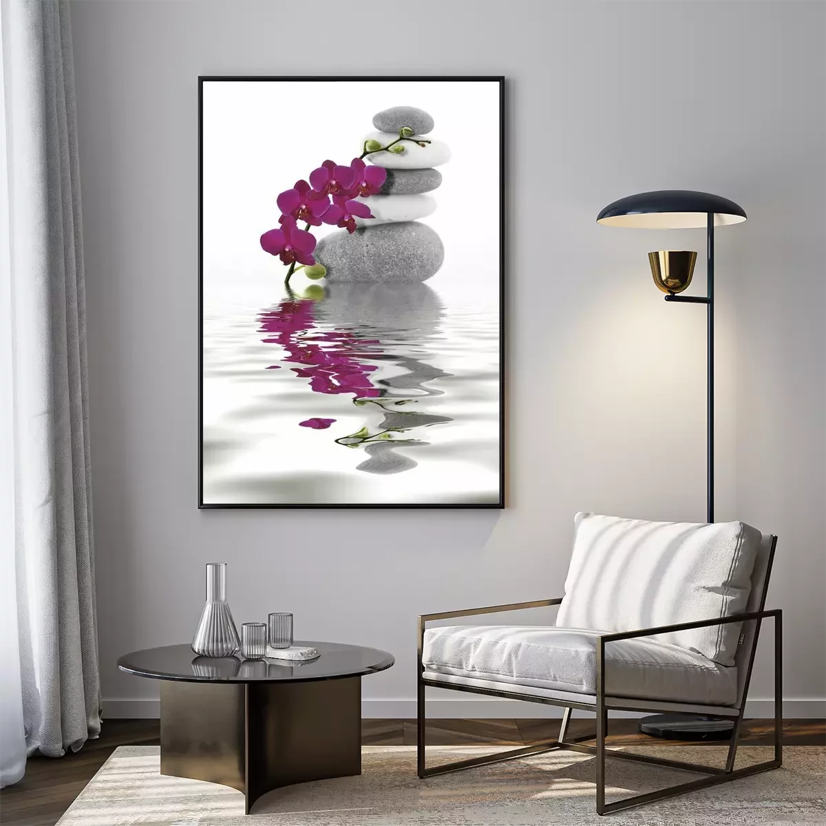 Poster: Steine und Orchidee umhüllen die Komposition