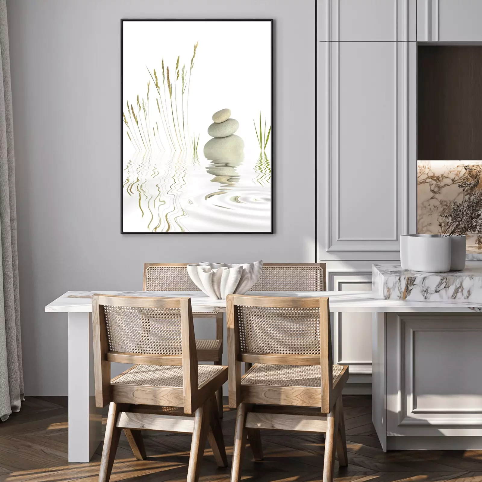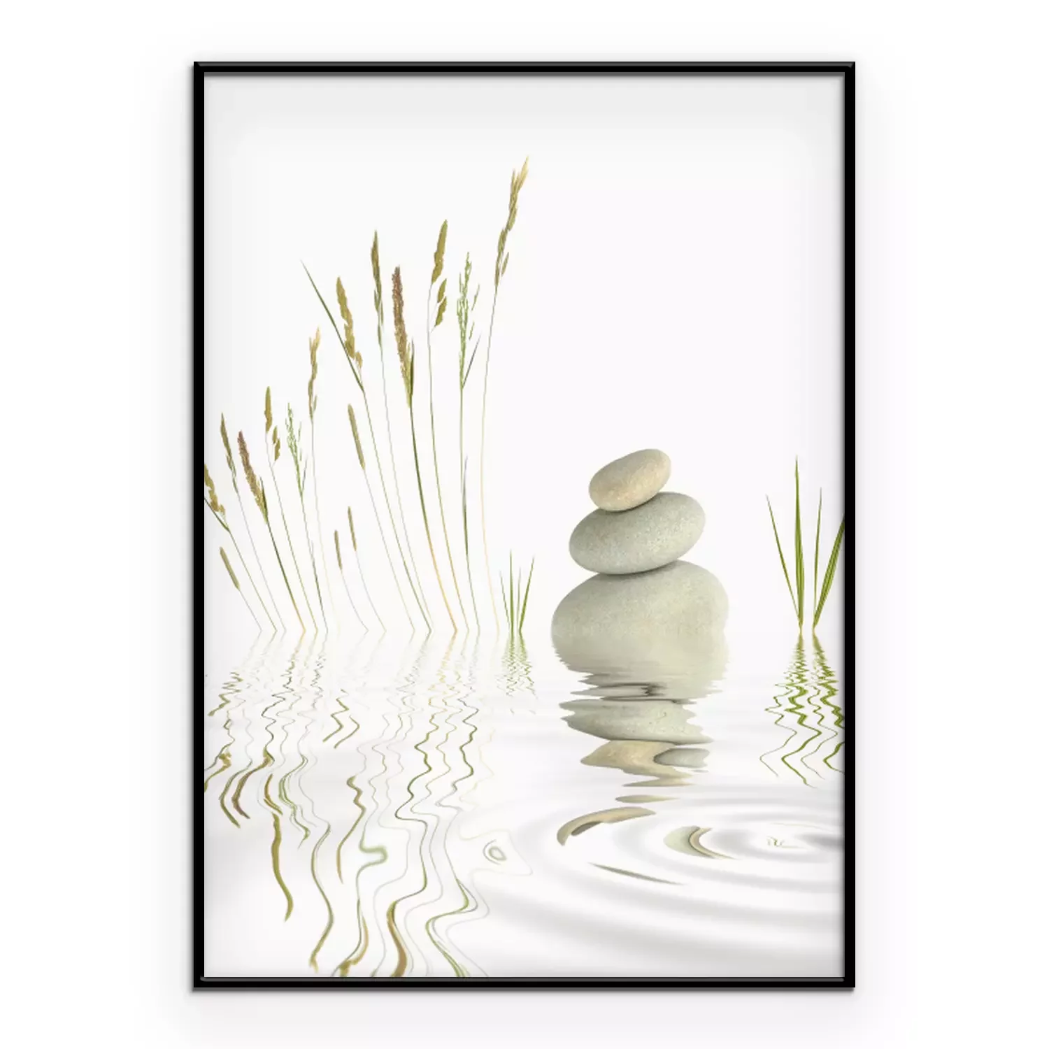 Steine Zen und Bambusgras auf der Wasseroberfläche