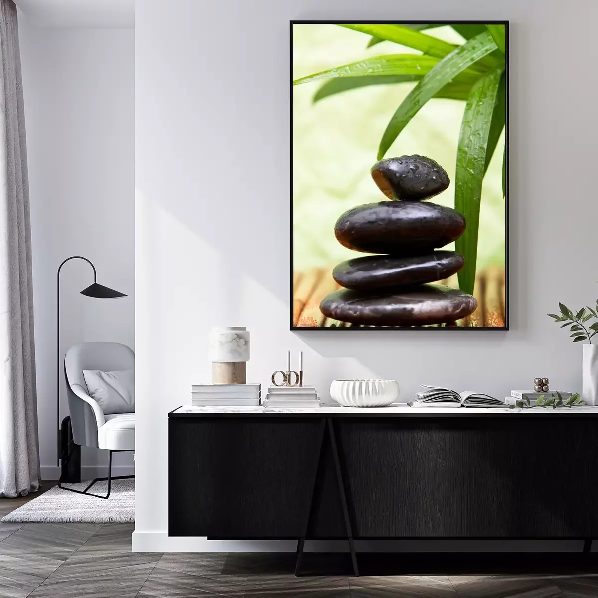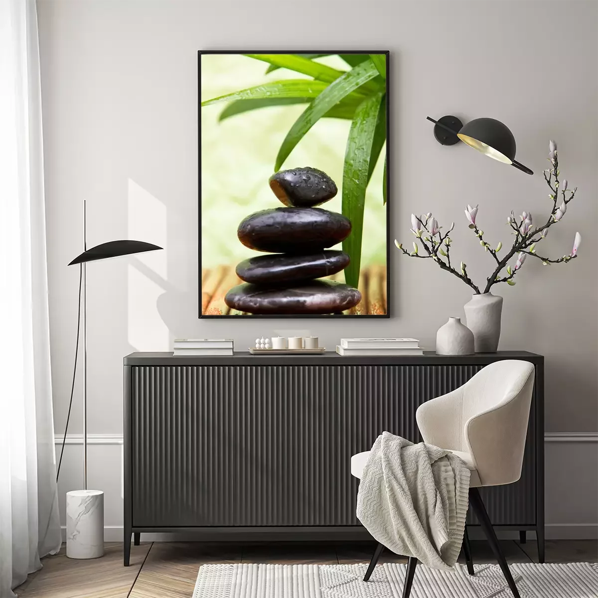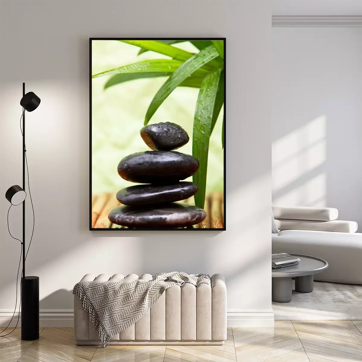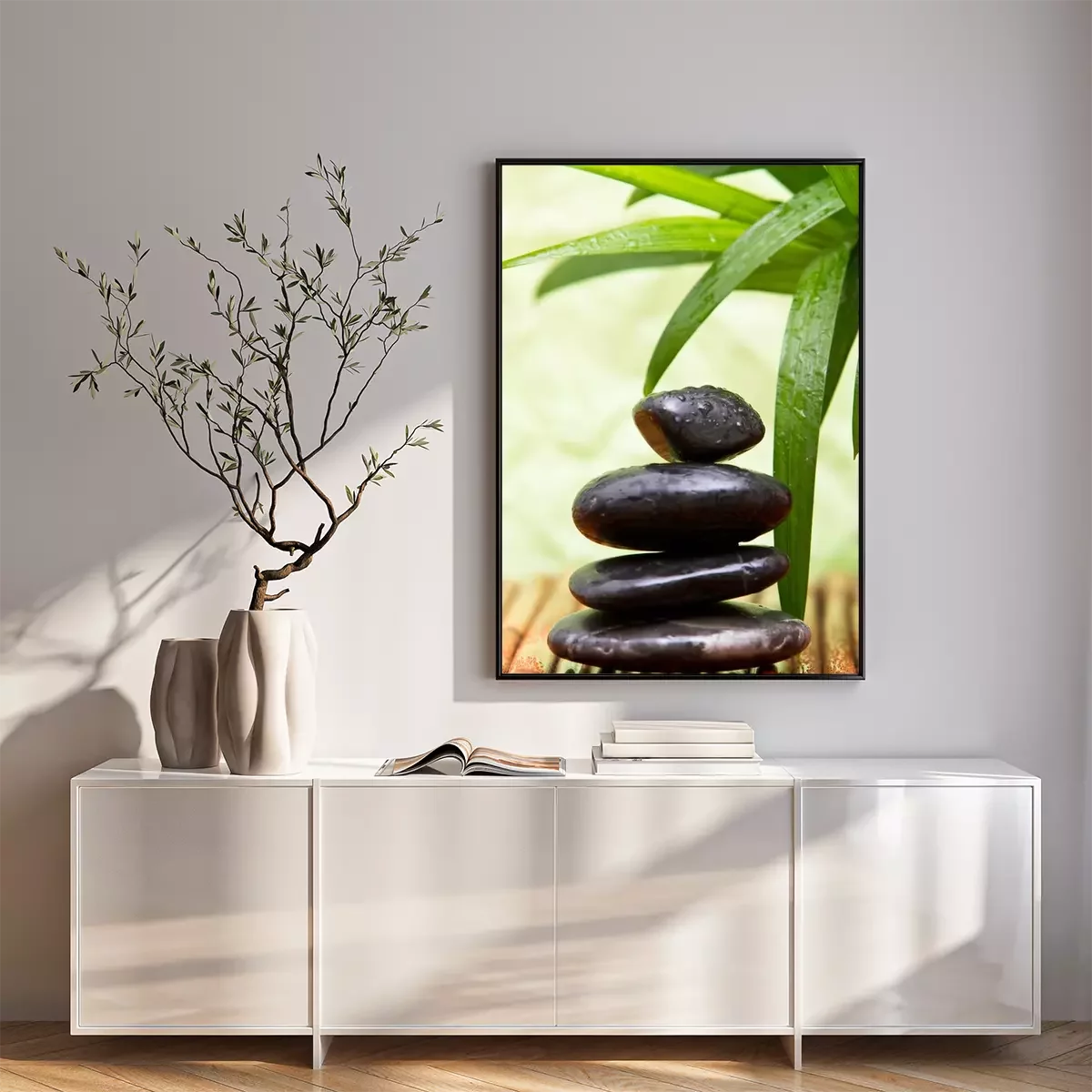 Poster: Steine Zen auf einer Bambusunterlage