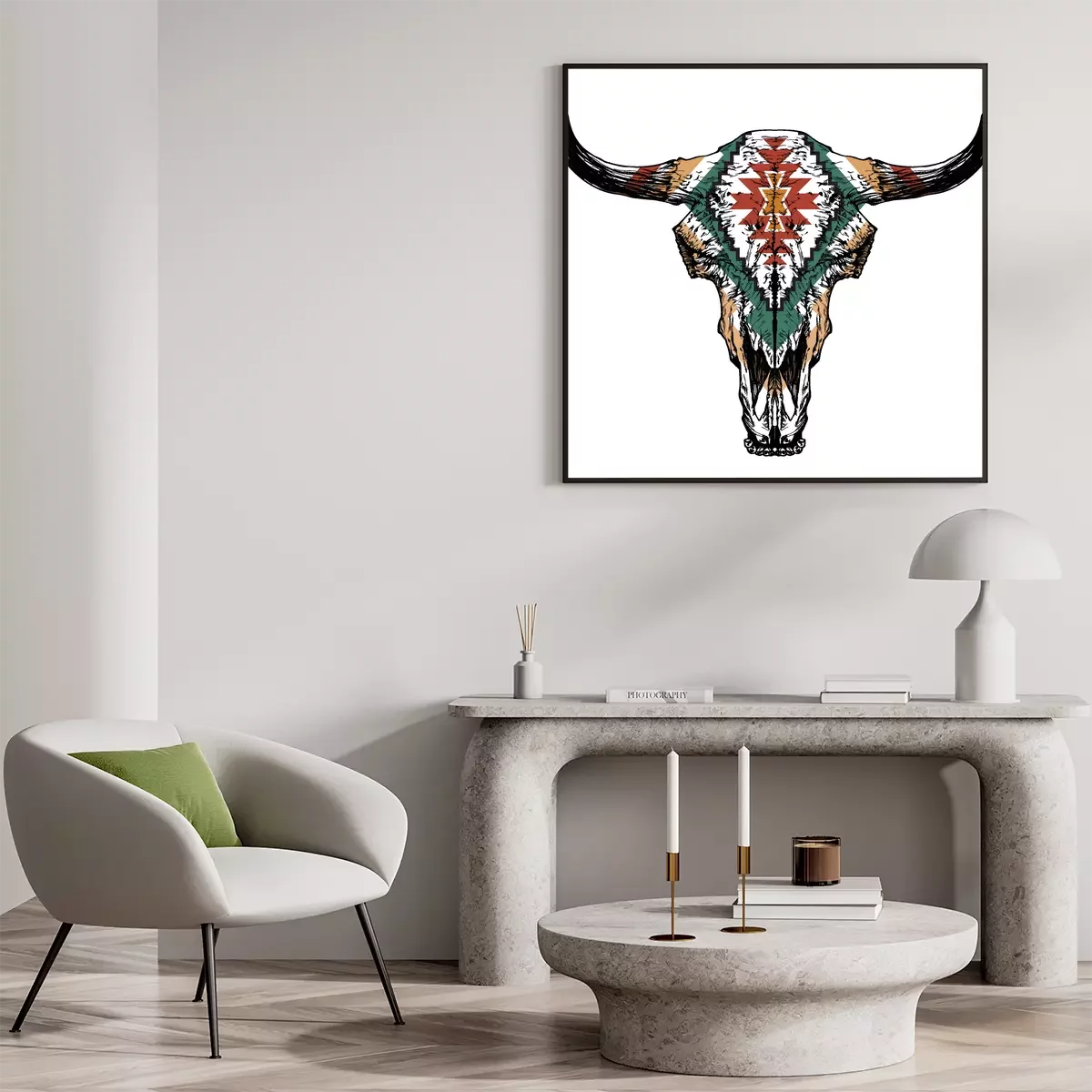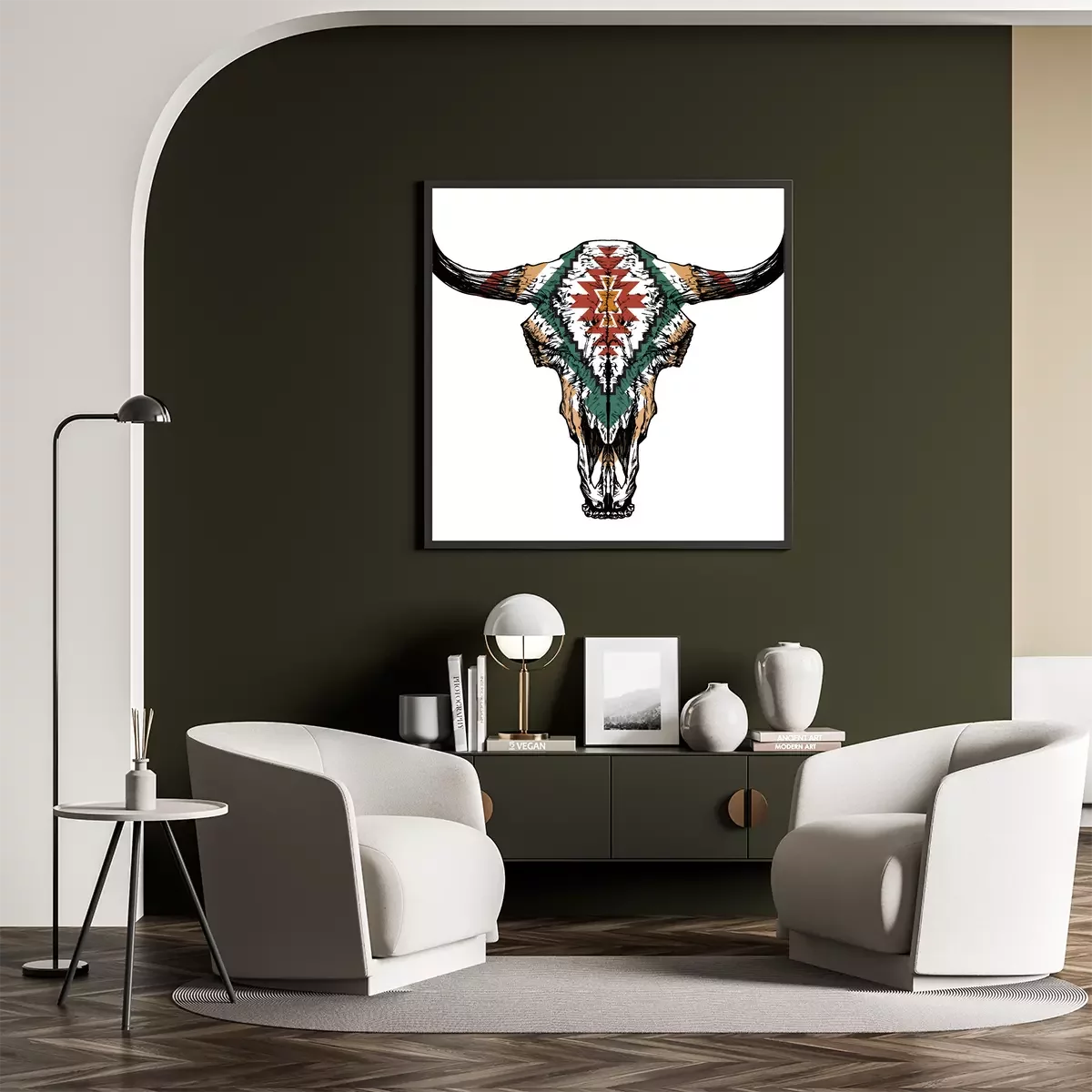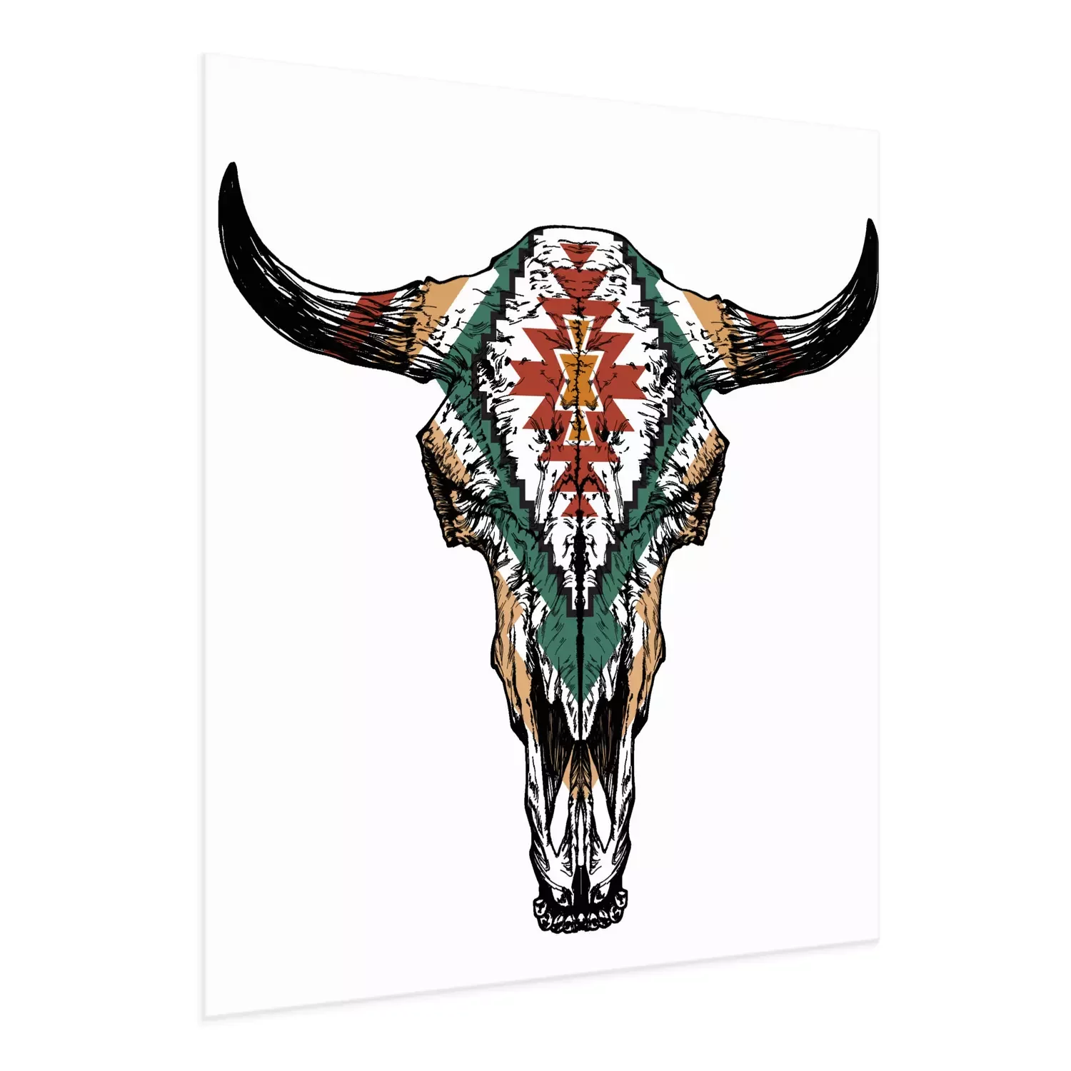 Poster Stierkopf-Grafik mit ethnischem Ornament