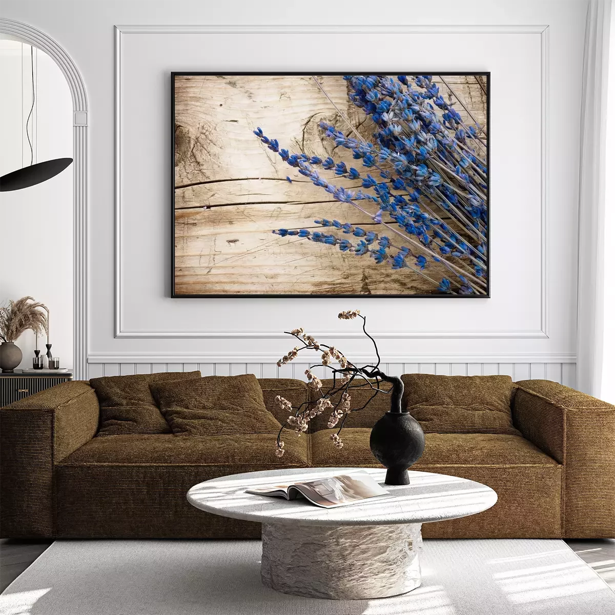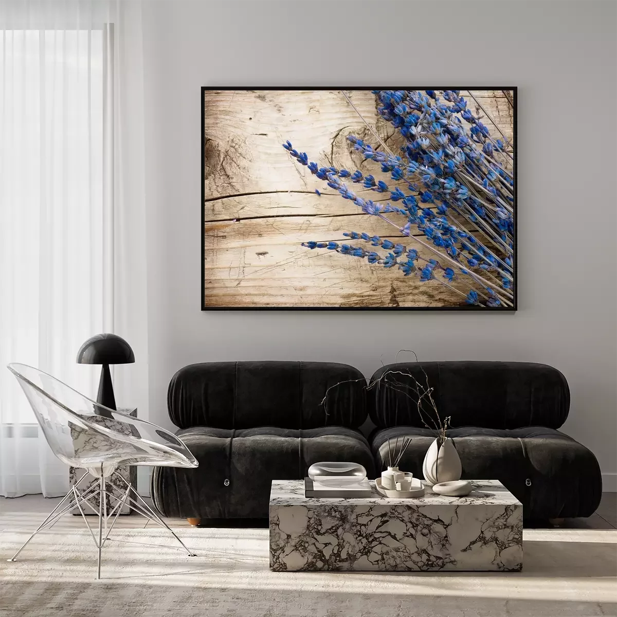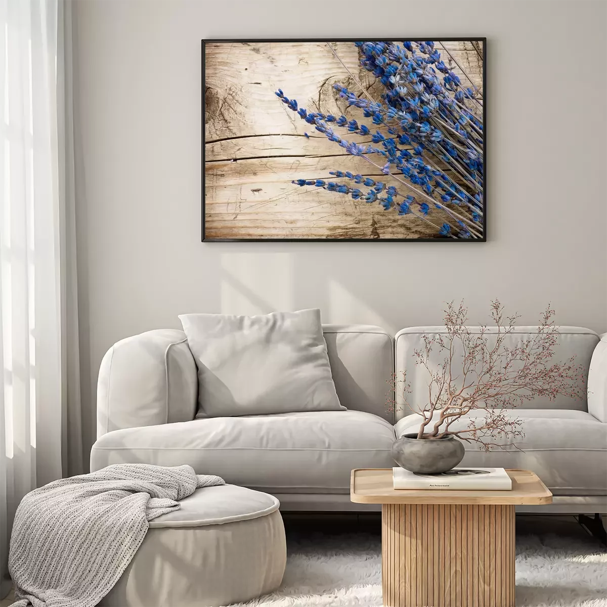 Poster: Stillleben Lavendel auf dem Hintergrund von Holzbrett