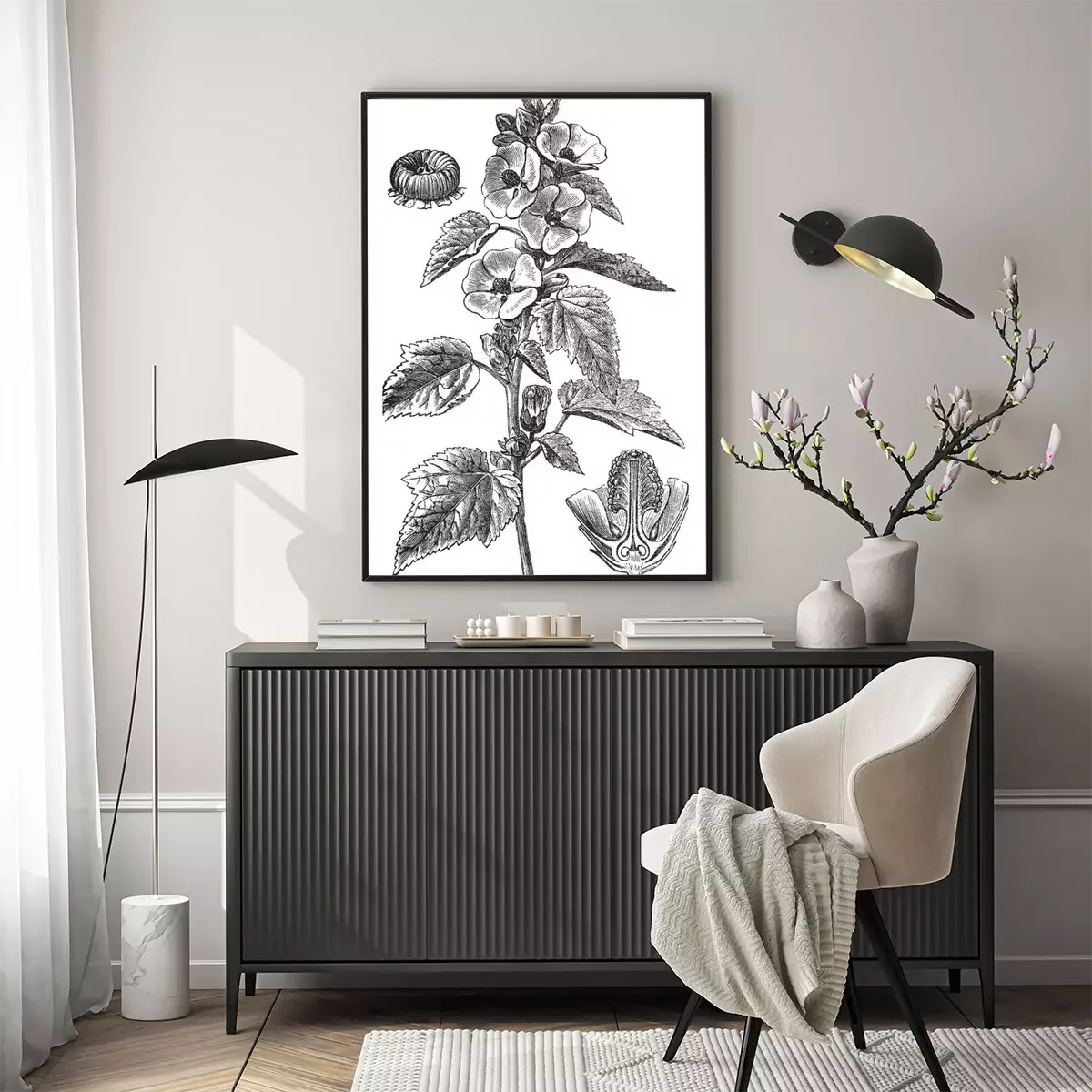 Poster: Stockmalve Abbildung aus einem Herbarium