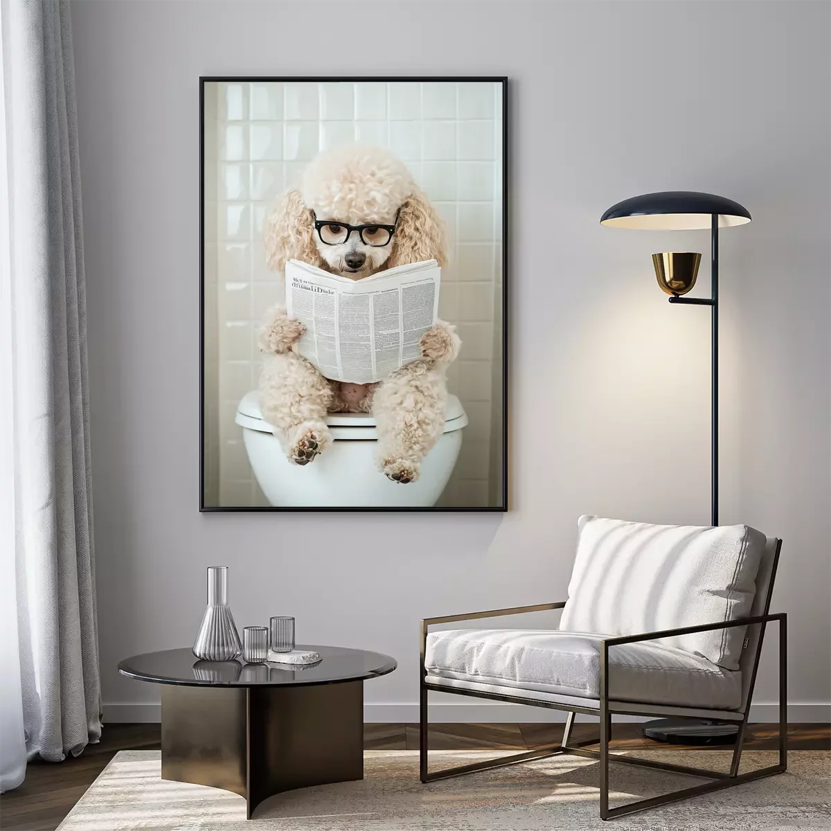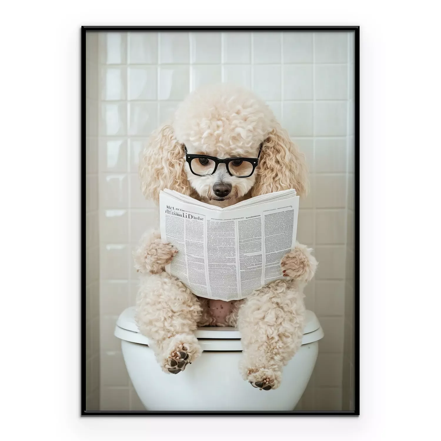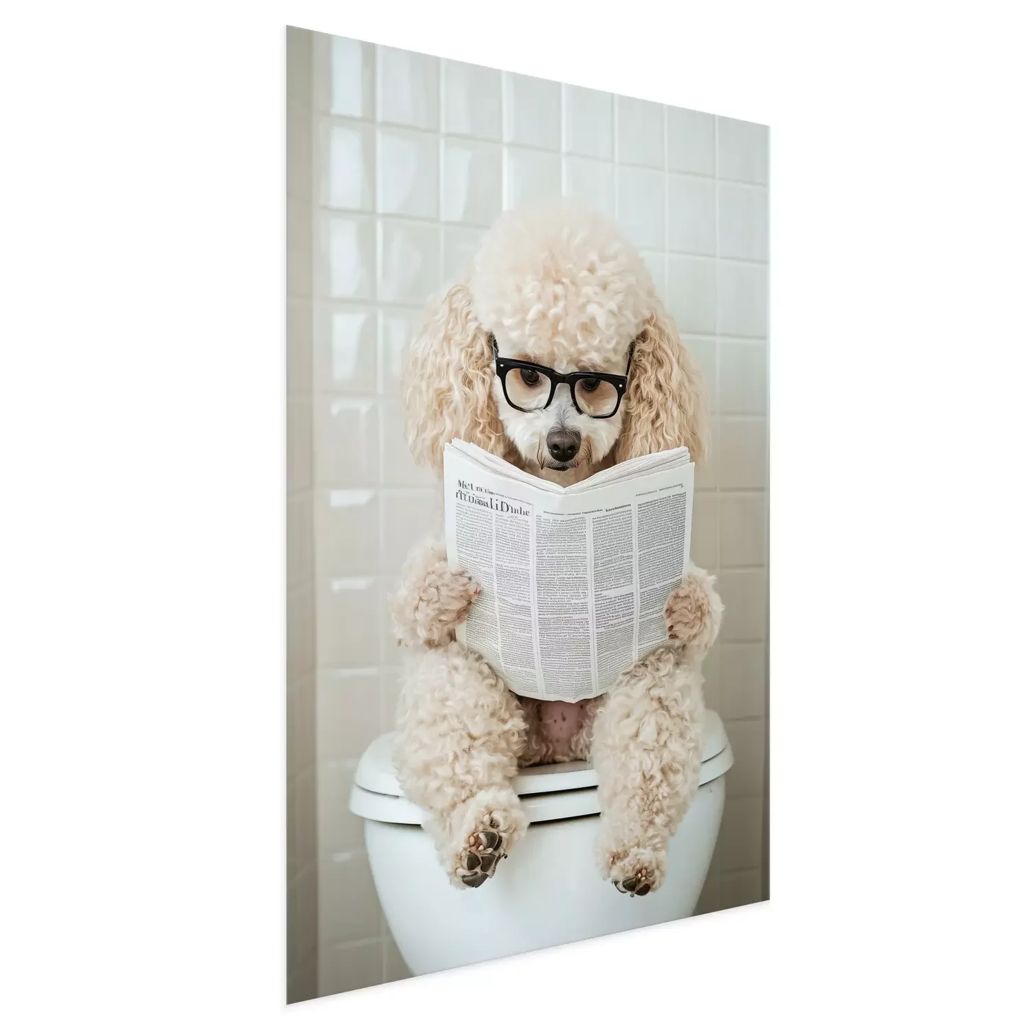Poster: Süßer Hund mit Zeitung auf der Toilette