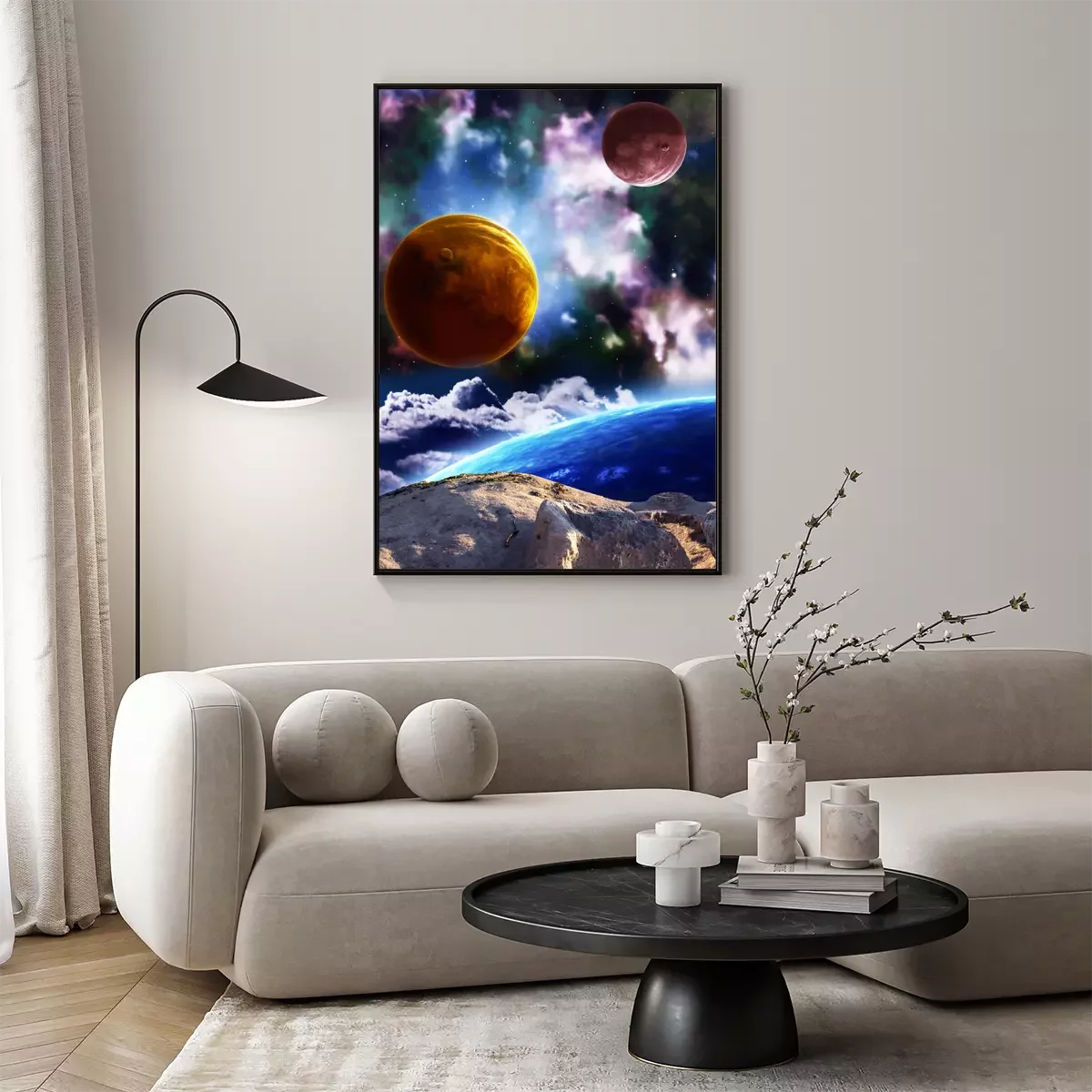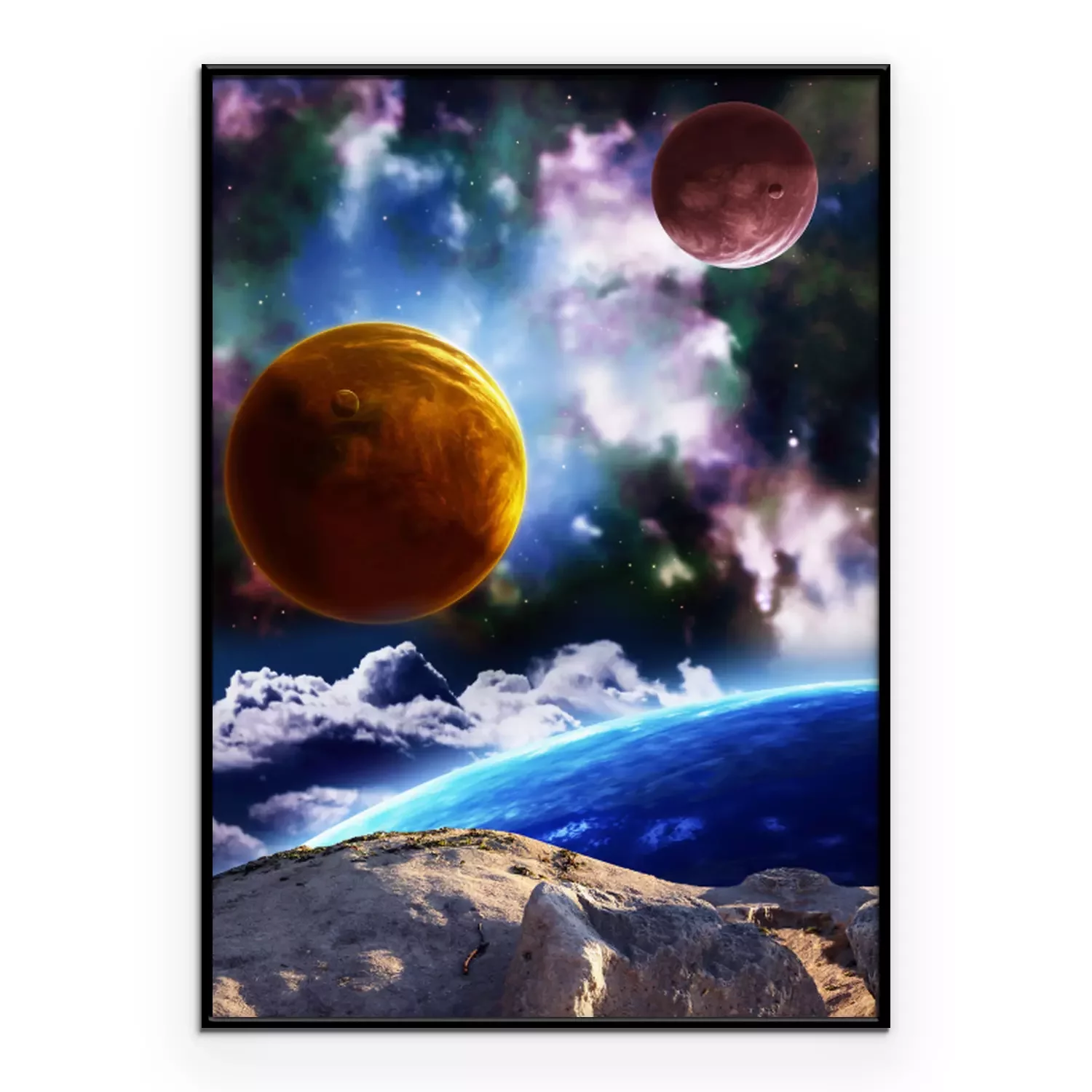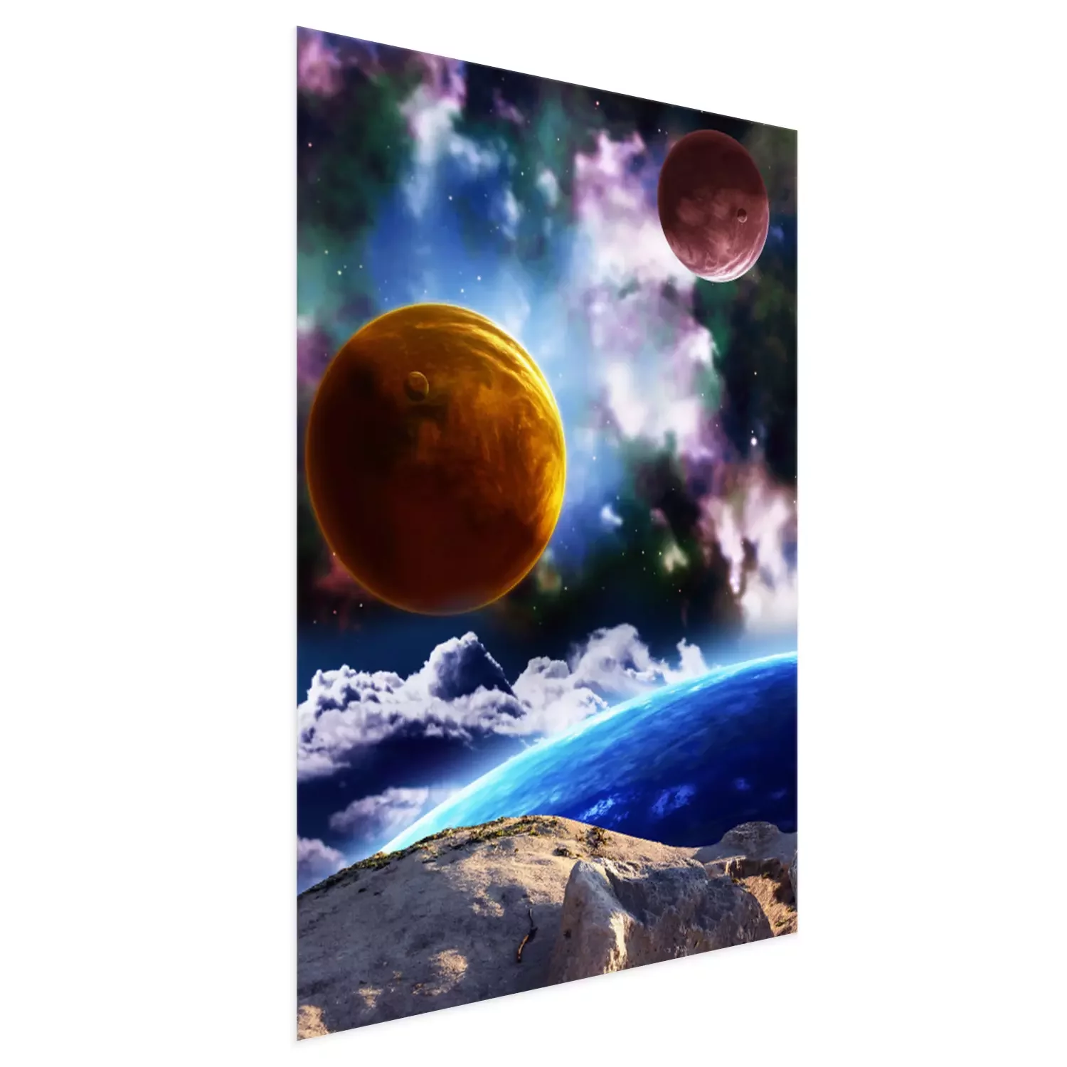 Poster: Szene aus dem Weltraum mit Planeten und Nebel