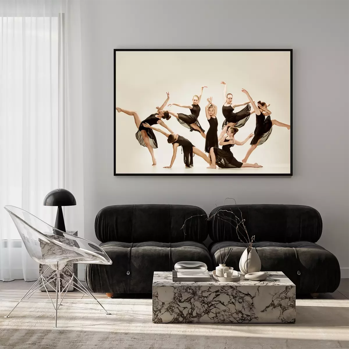 Poster Tänzerinnen in Schwarz zeigen eine Vorführung