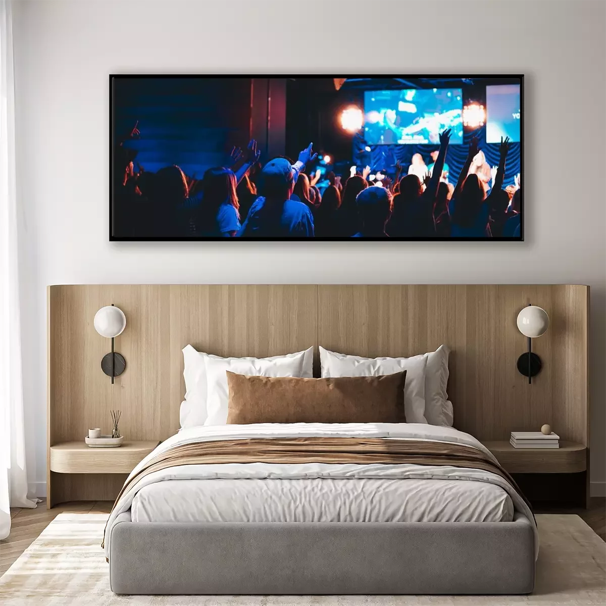 Poster: Tanzende Menschenmenge bei einem Bandkonzert