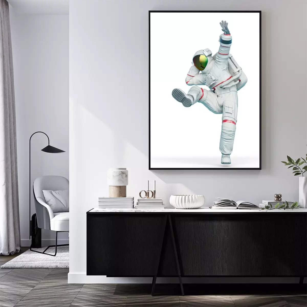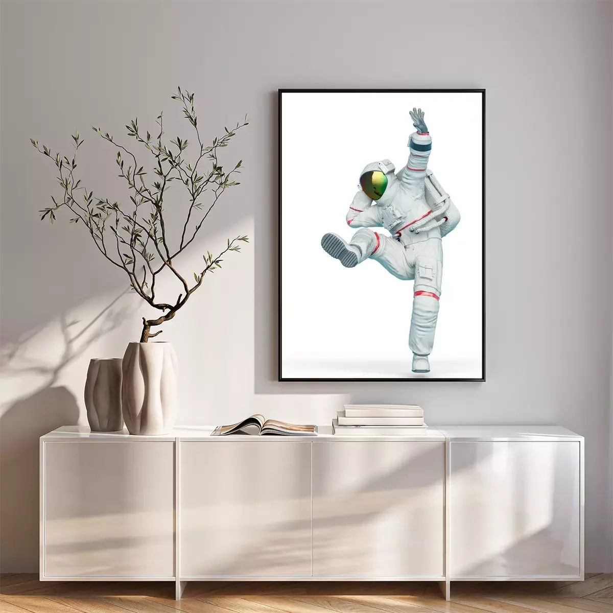 Poster: Tanzender Kosmonaut im weißen Kostüm