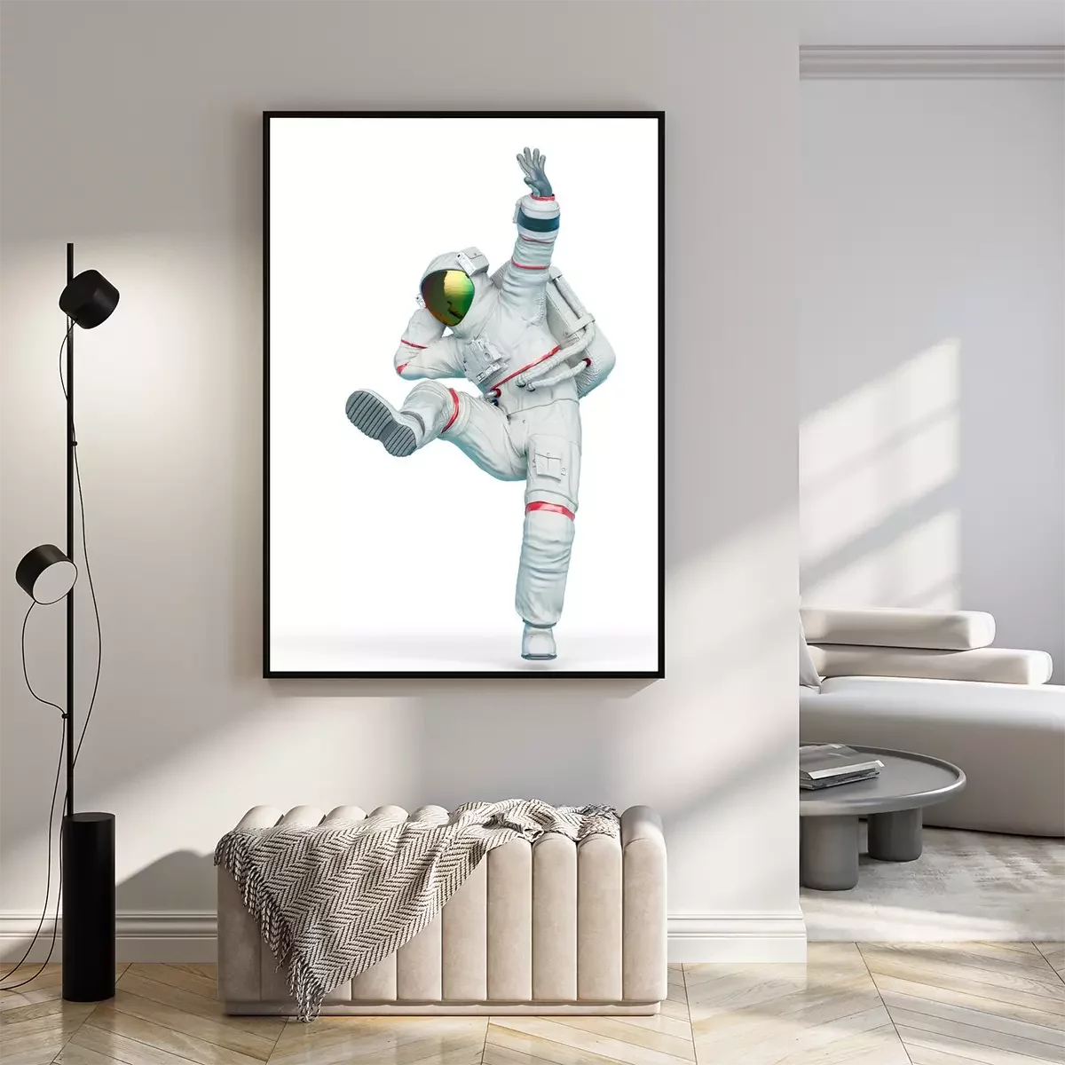 Poster Tanzender Kosmonaut im weißen Kostüm