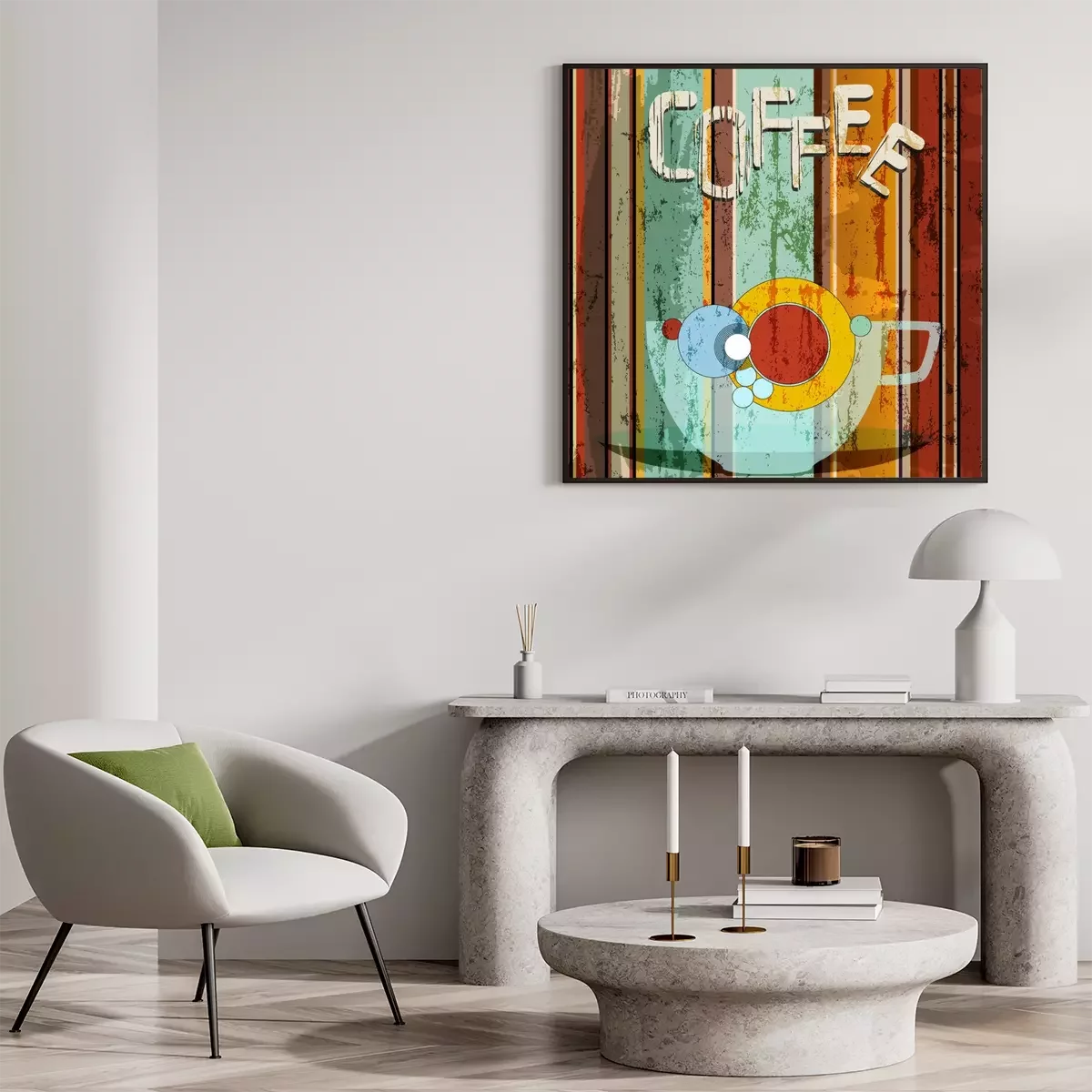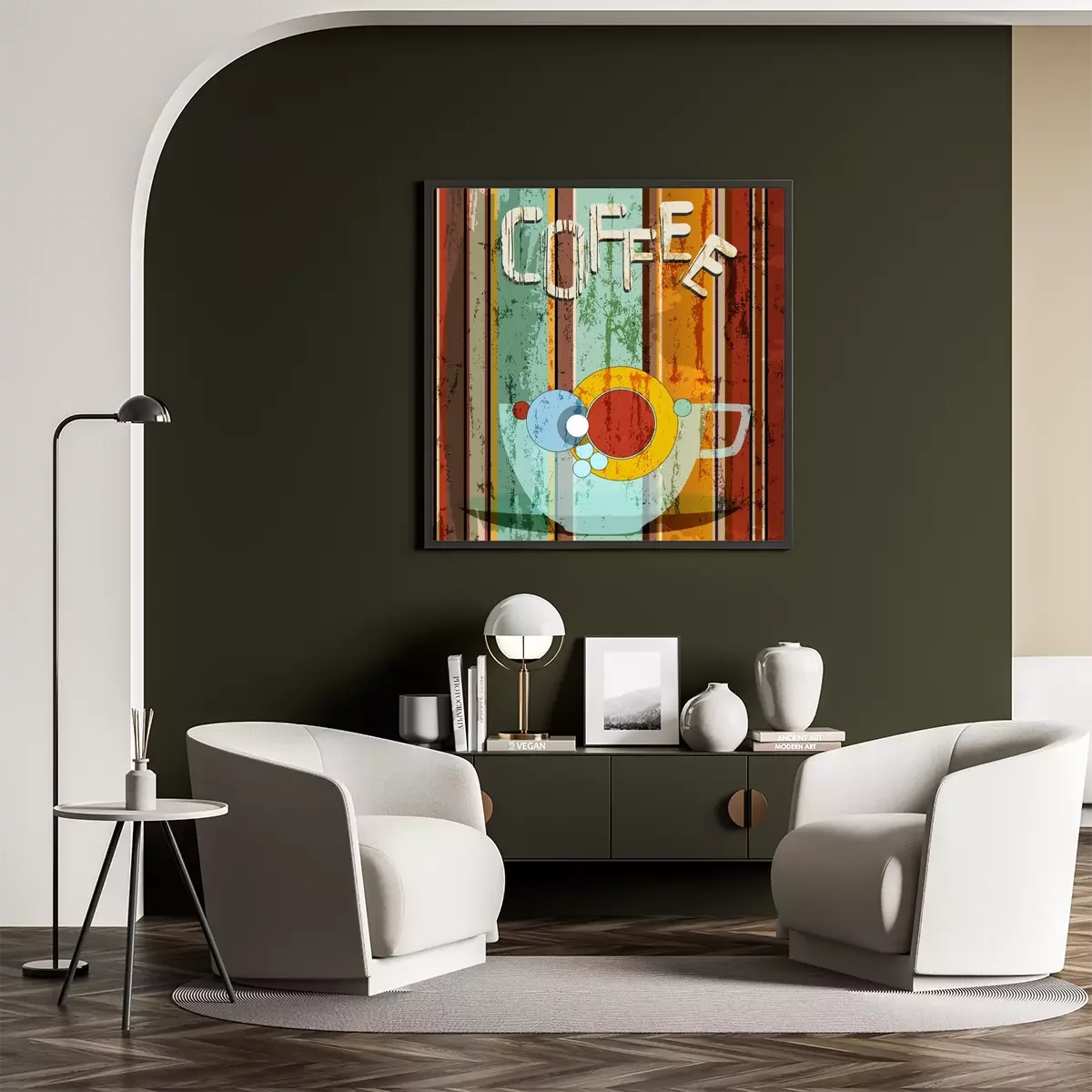 Poster: Tasse Tee auf einem gestreiften Hintergrund