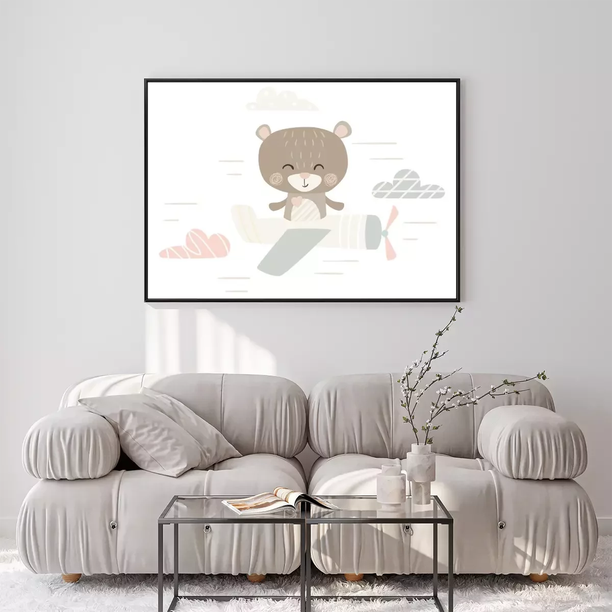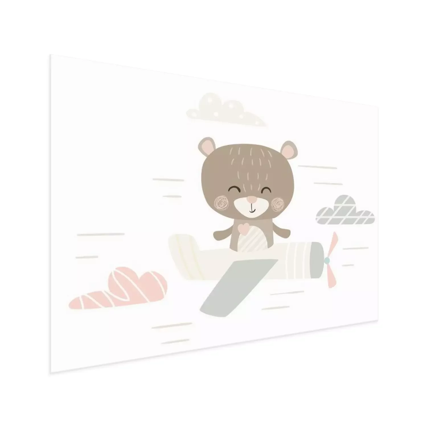 Poster: Teddybär in einem Flugzeug zwischen den Wolken
