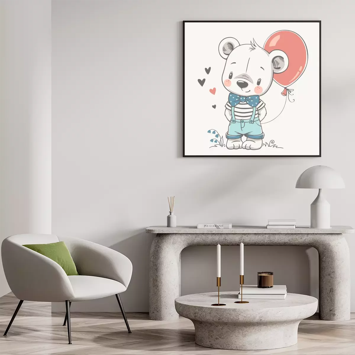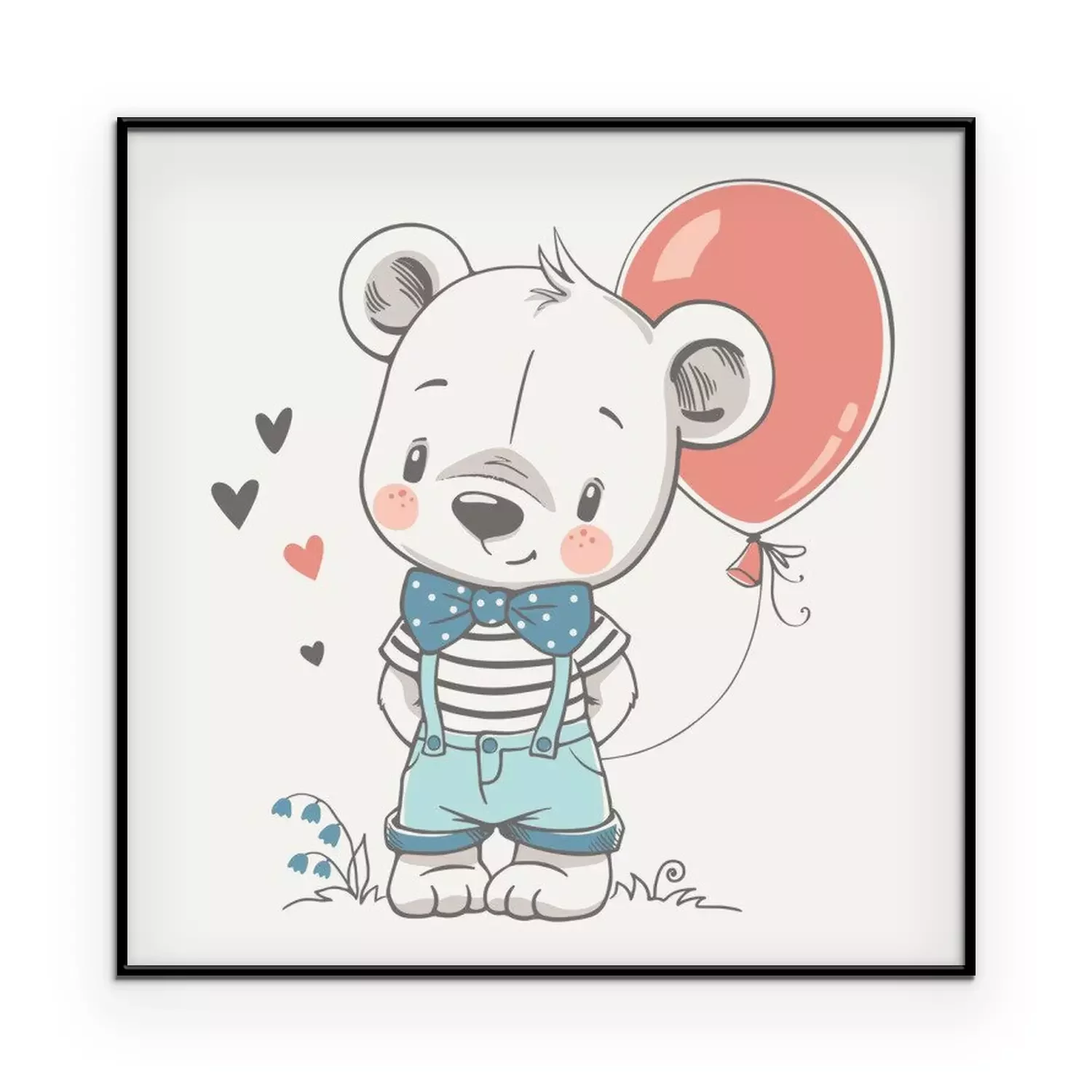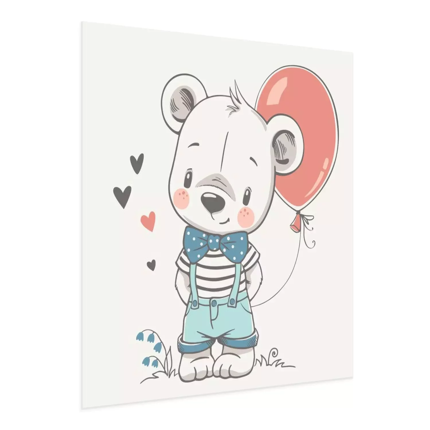 Poster: Teddybär mit einer gepunkteten Fliege und einem roten Ballon