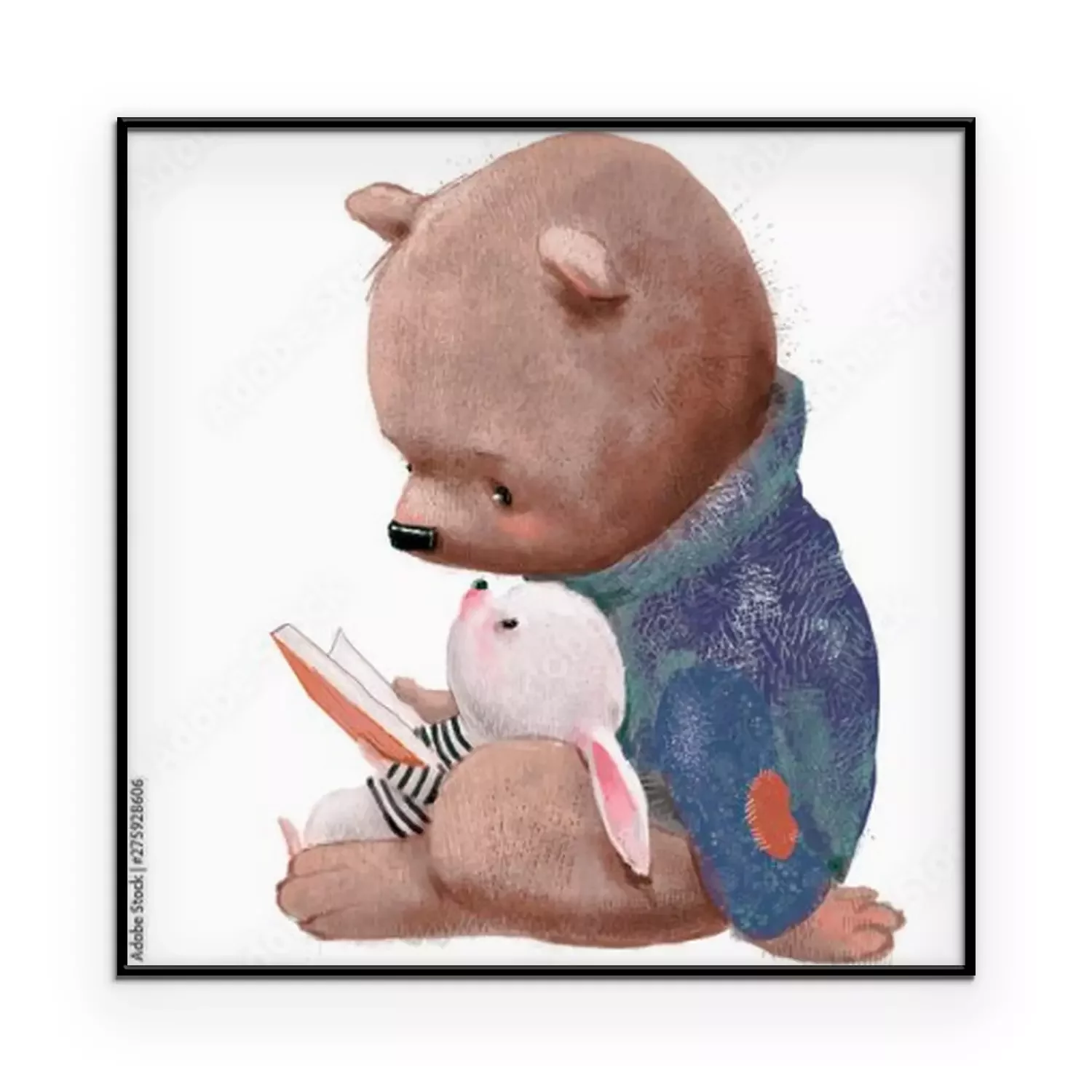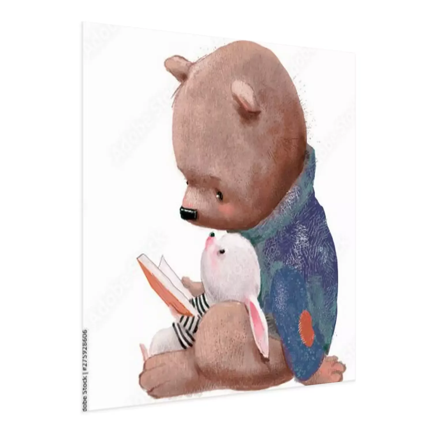 Poster Teddybär und Häschen lesen ein Buch