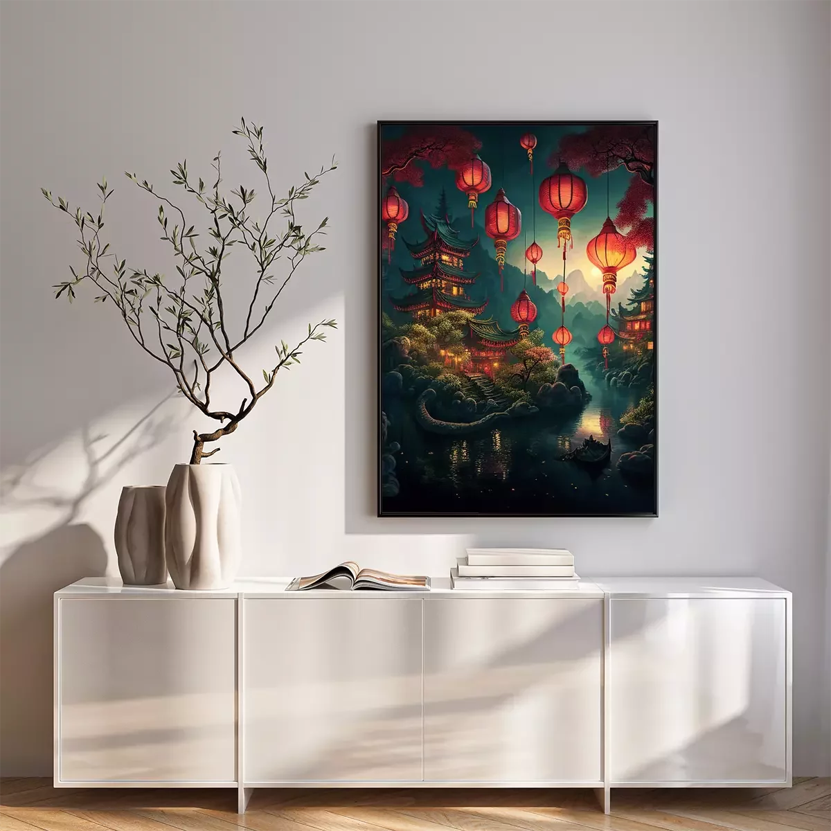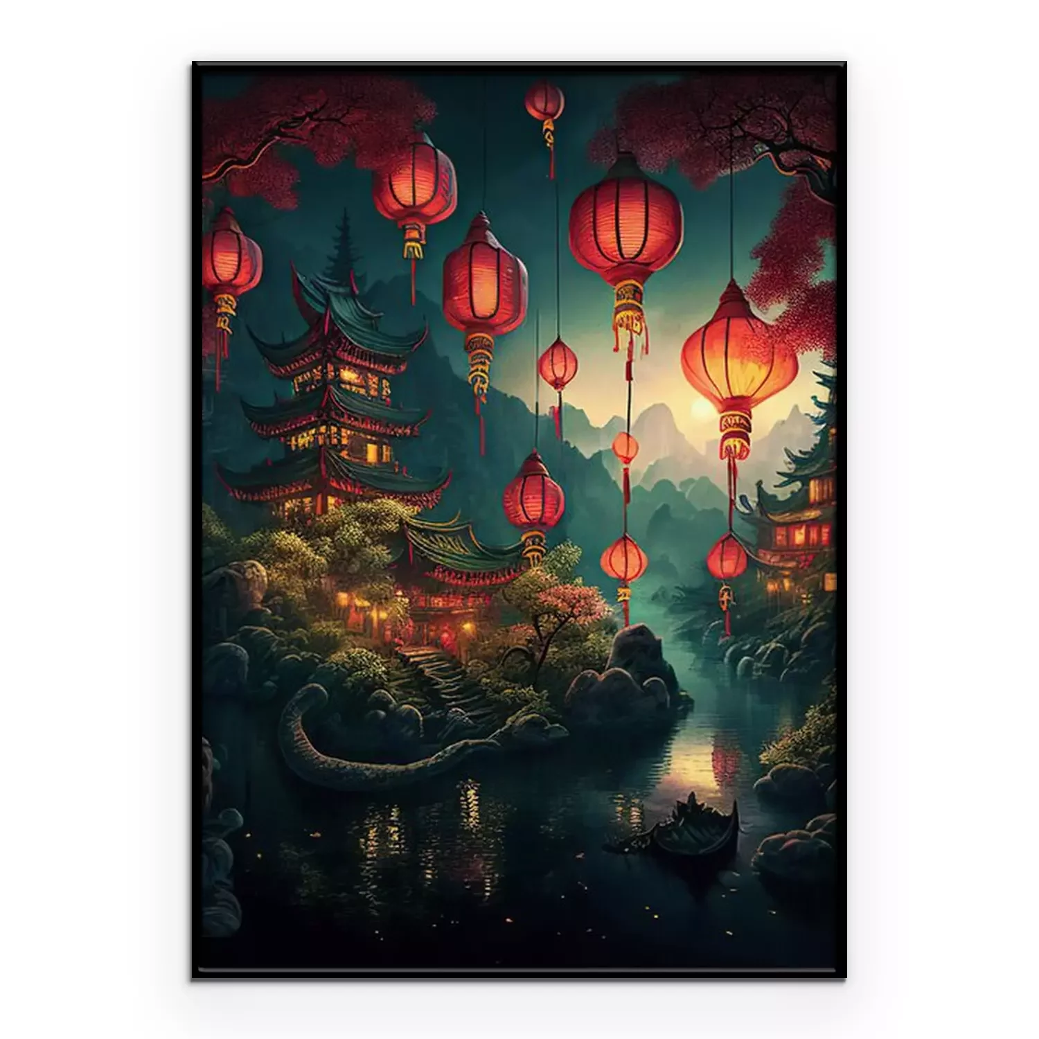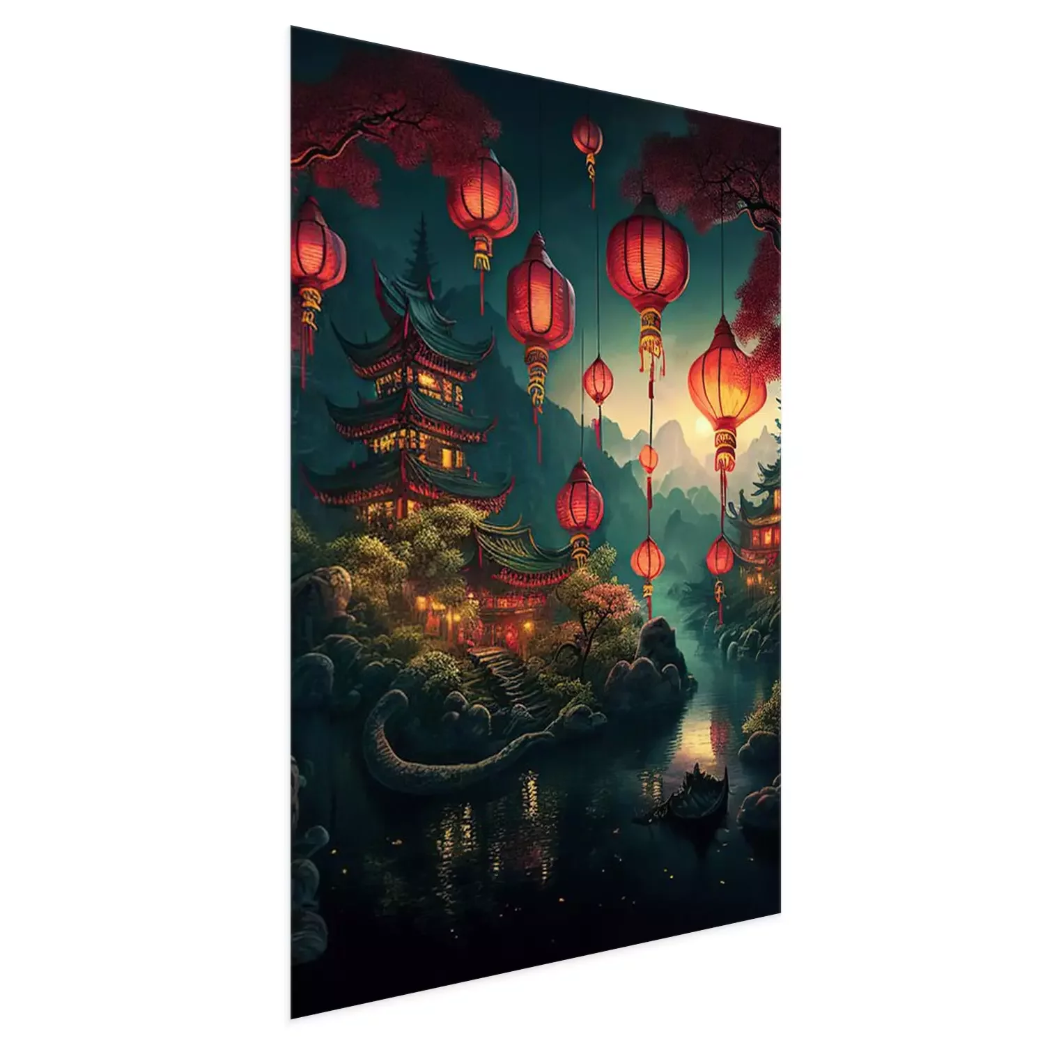 Poster Tempel- und Papierlaternen