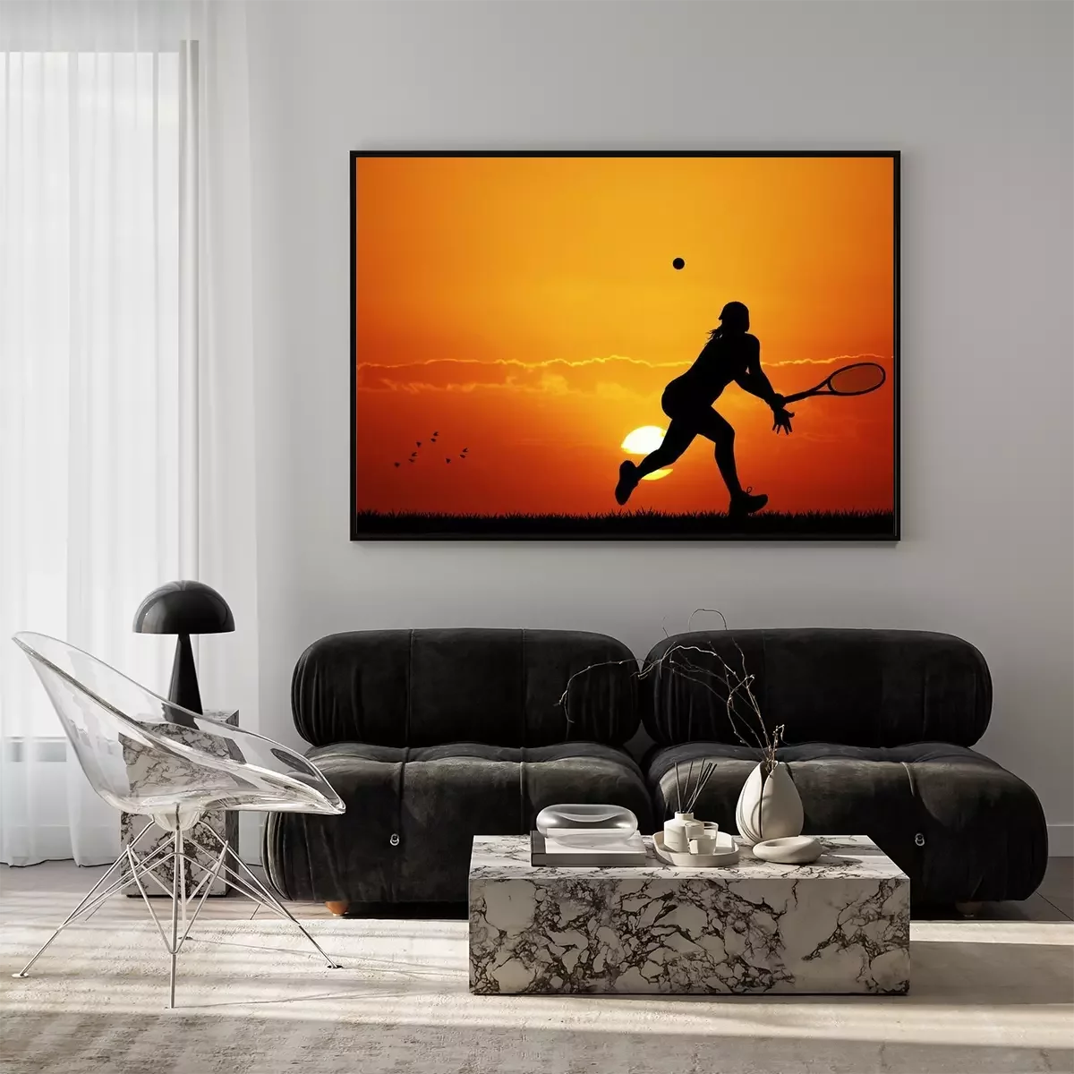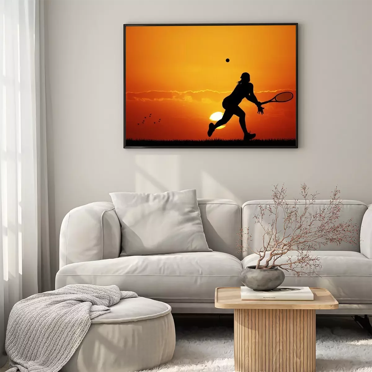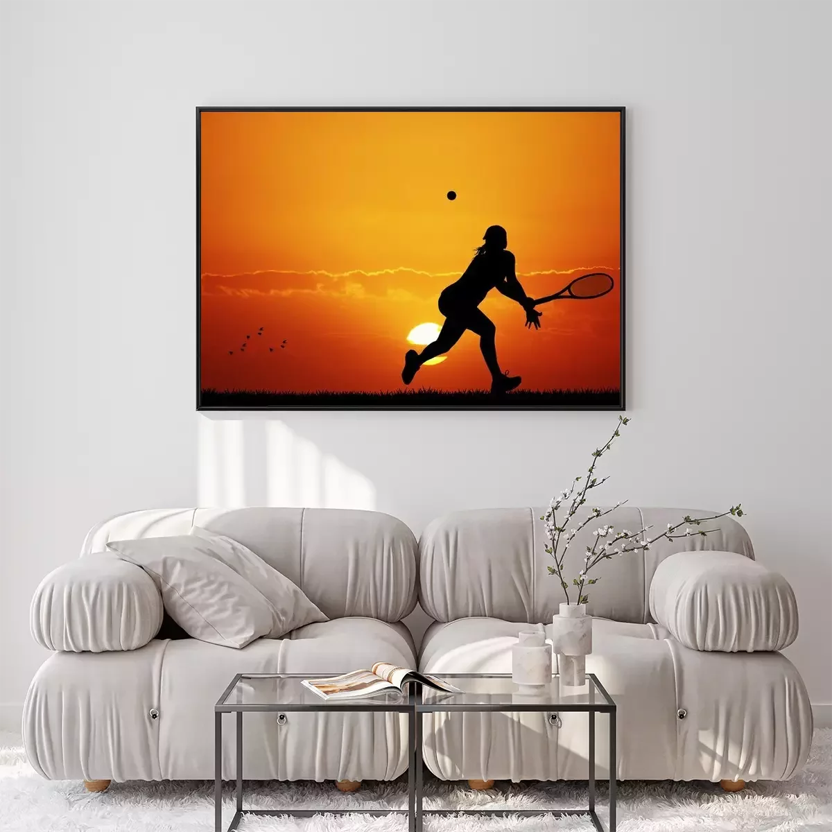 Poster: Tennis auf einem Sonnenuntergang Hintergrund